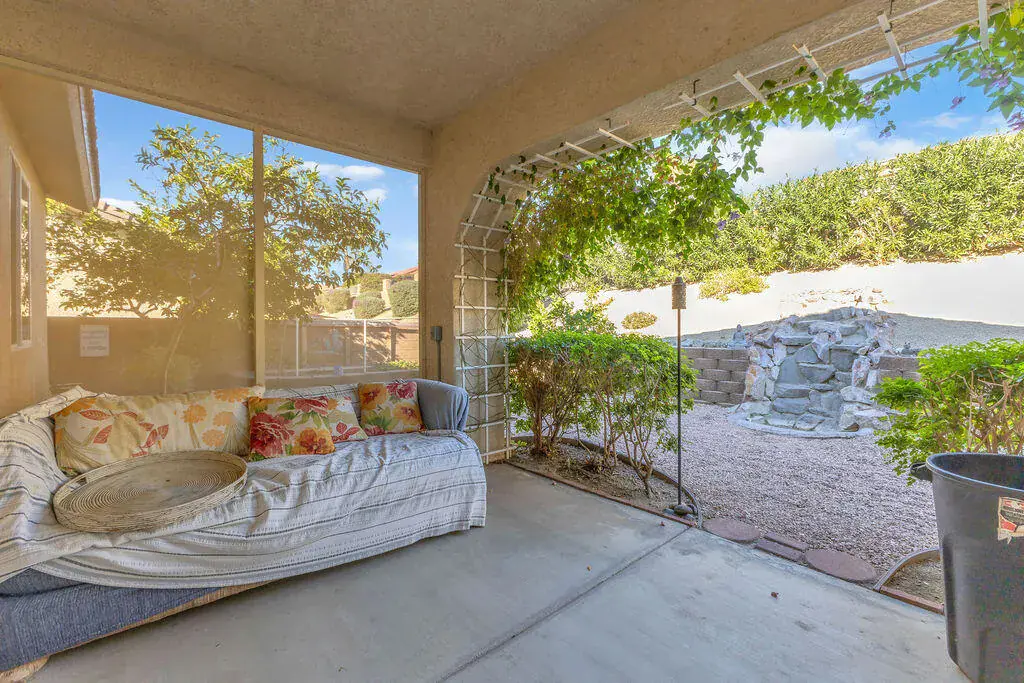 Nestled in a peaceful 55+ community in Desert Hot Springs, this beautiful three bedroom home offers comfort, convenience and breathtaking mountain views overlooking the Coachella Valley. The layout features a bright living room area with a gas fireplace perfect for relaxing or entertaining, kitchen with ample cabinet space. And a primary suite complete with a walk in tub for ease and comfort.Step outside to enjoy a gorgeous backyard designed for both serenity and social gatherings- ideal for morning coffee or sunsets, multiple fruit trees,This home combines a vibrant community lifestyle with the privacy and beauty of desert living.Enjoy the clean/ modern facility clubhouse, pool and spa.