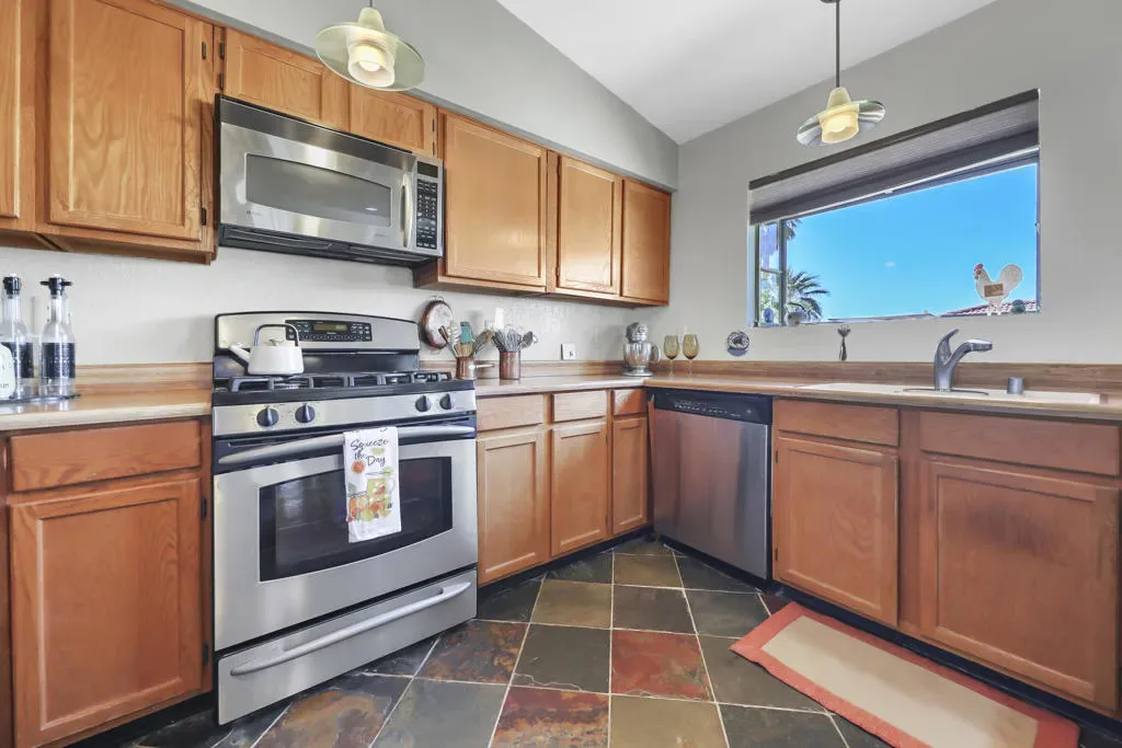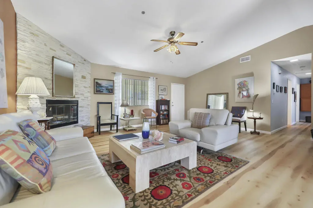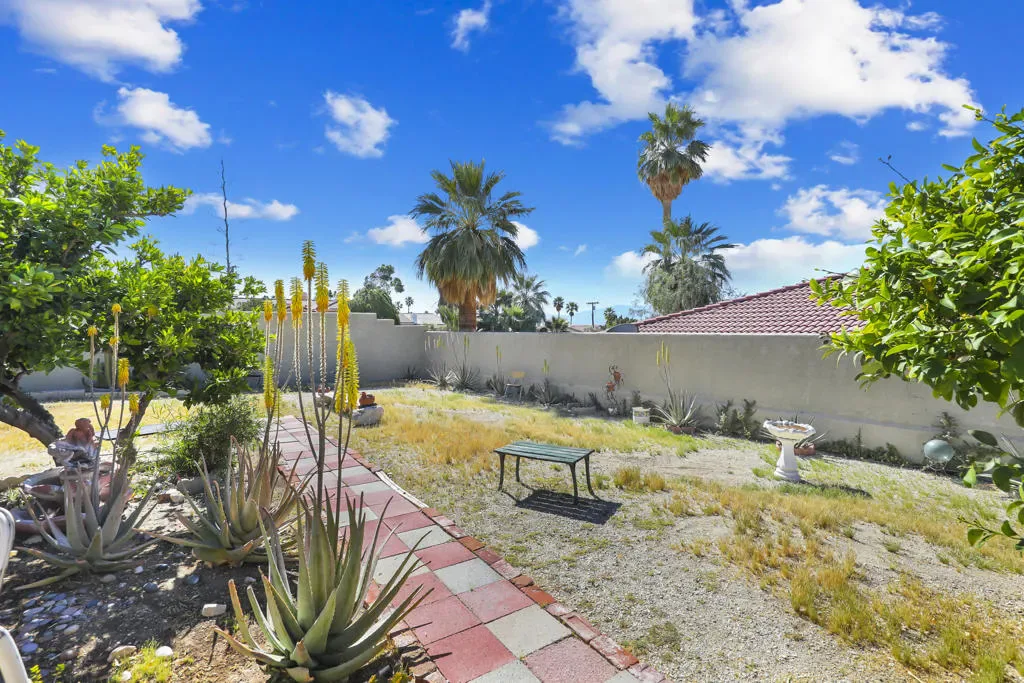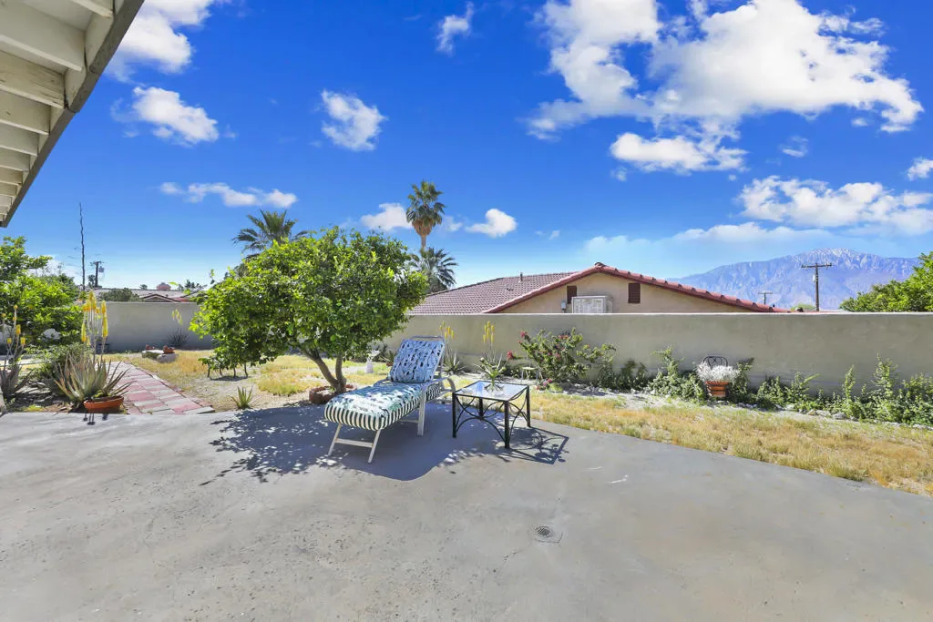 Seller offering buyer $12,000 towards their closing cost with an successful closing. Perched above the city, this private desert retreat offers an elevated blend of serenity, style, and effortless living, framed by sweeping mountain views. Designed for both relaxation and versatility, the expansive, fully enclosed backyard presents a rare opportunity to create a custom resort setting with room for a pool and spa. With NO HOA and exceptional short-term rental or investment potential, the property is ideally positioned just minutes from Palm Springs and Joshua Tree National Park. A generous covered patio extends the living experience outdoors–perfect for entertaining or enjoying tranquil desert evenings. Inside, a thoughtfully designed layout features three bedrooms plus a den, offering flexibility for guests, work, or leisure. Slate and laminate flooring provide a cohesive, low-maintenance aesthetic throughout. The living room is anchored by a striking stacked stone fireplace, creating a warm and inviting focal point. The kitchen offers abundant cabinetry and opens to picturesque backyard and mountain vistas. The primary suite serves as a peaceful retreat and walk-in closet, while two additional bedrooms ensure comfort and privacy for guests. Bonus – owned solar. Call today to schedule your appointment to view this home.