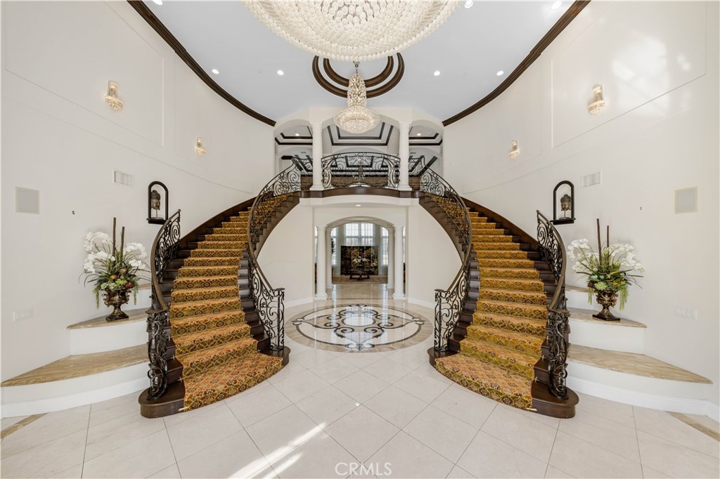 VIEW VIEW VIEW! Architectural Masterpiece custom built mansion with fantastic panoramic VIEWS!! Thoughtfully designed mansion features 6 bedrooms and 8 baths that that spans approximately 9158 sq. ft. and sits on approx. 57978 sq. ft. lot. The impressive double doors open up and you are greeted by a dramatic spiral double staircase and 35’ high ceilings, two stunning Swarovski Chandeliers with Auto lift for easy maintenances.