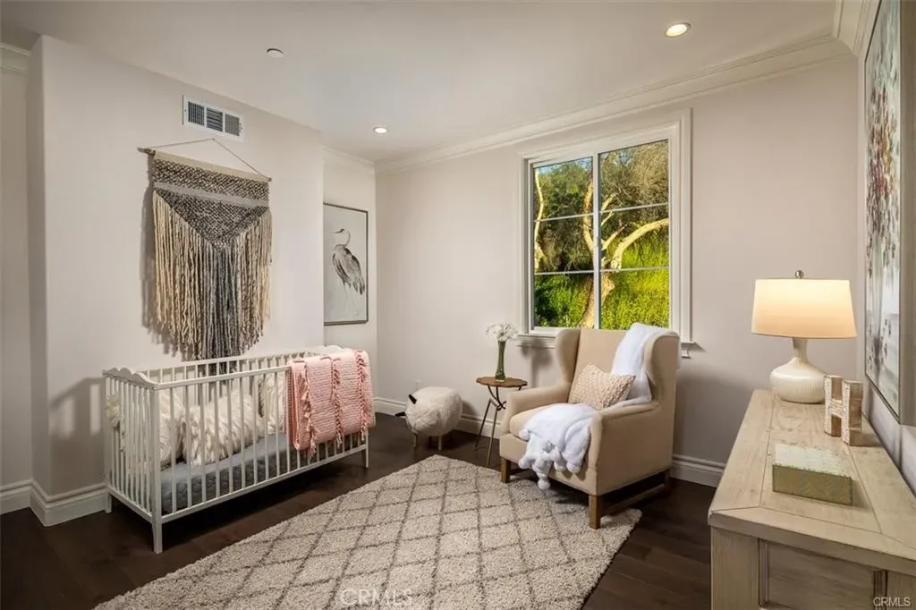 Luxuriate in the spa-like Primary bathroom, featuring a freestanding tub set against bay windows, two walk-in closets, his and her vanities, and a steam shower. Additional highlights include hardwood floors, a three-car garage with epoxy floors, three tankless water heaters, five A/C condensers, and state-of-the-art home automation.