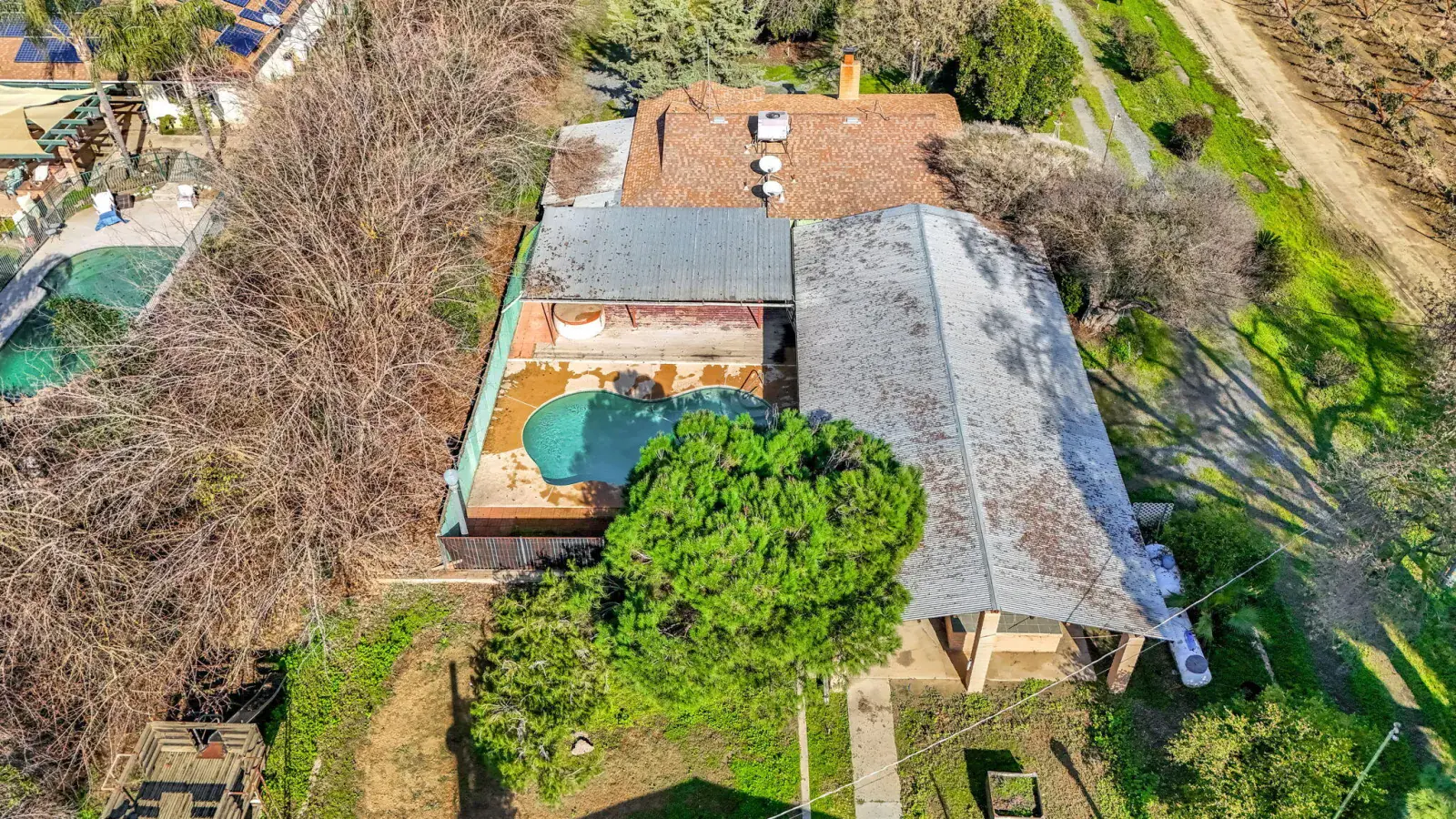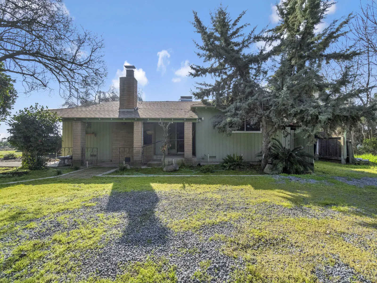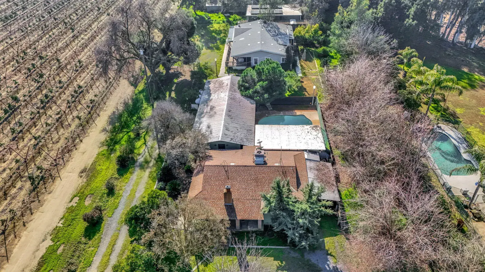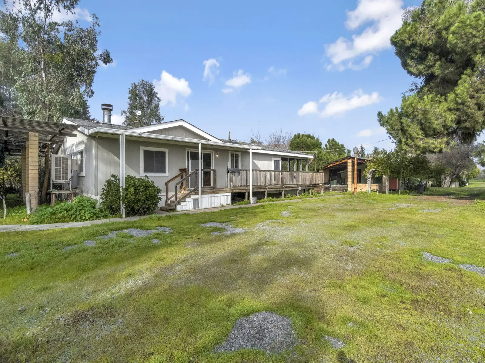 Come take a look at this country property in Dinuba situated on 1.48 acres. The property features a 1,334 sq ft, 2-bedroom, 2-bath home located in front, along with a 3-bedroom, 2-bath manufactured home in the back. The property includes solar, a swimming pool, a detached bonus room, multiple covered storage areas, and two separate power meters. The layout is suitable for multi-generational living and offers an opportunity for a buyer to make improvements to suit their needs. Contact your favorite Realtor to schedule a private showing.