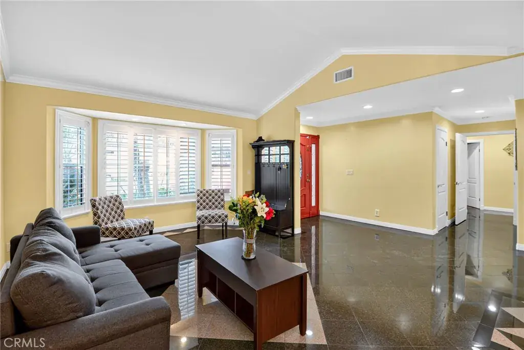 This house has 4 Bedrooms: three of them with engineered wood floor and one with black granite floor like the rest of the house; the owner’s bedroom is huge and has a large walking closet and the bathroom has two sinks. There are 3 bathrooms, two of which were fully updated recently and one partially updated. Total living area approximately 2615 sqft, large family Room with fireplace, Living Room, Dining Room and Kitchen with new ovens and a Viking 6 burner gas Range. The exterior includes a patio, pool, BBQ covered area, pergola, some fruit trees, a long driveway for RV or 6 vehicles and tile roof.