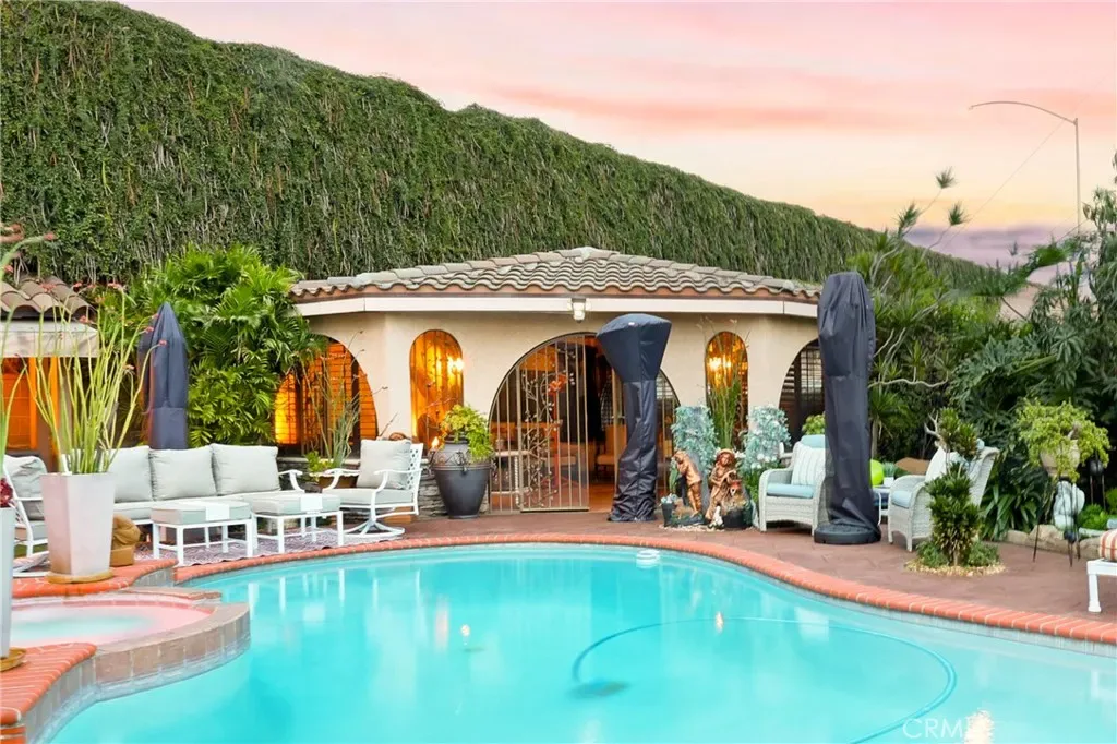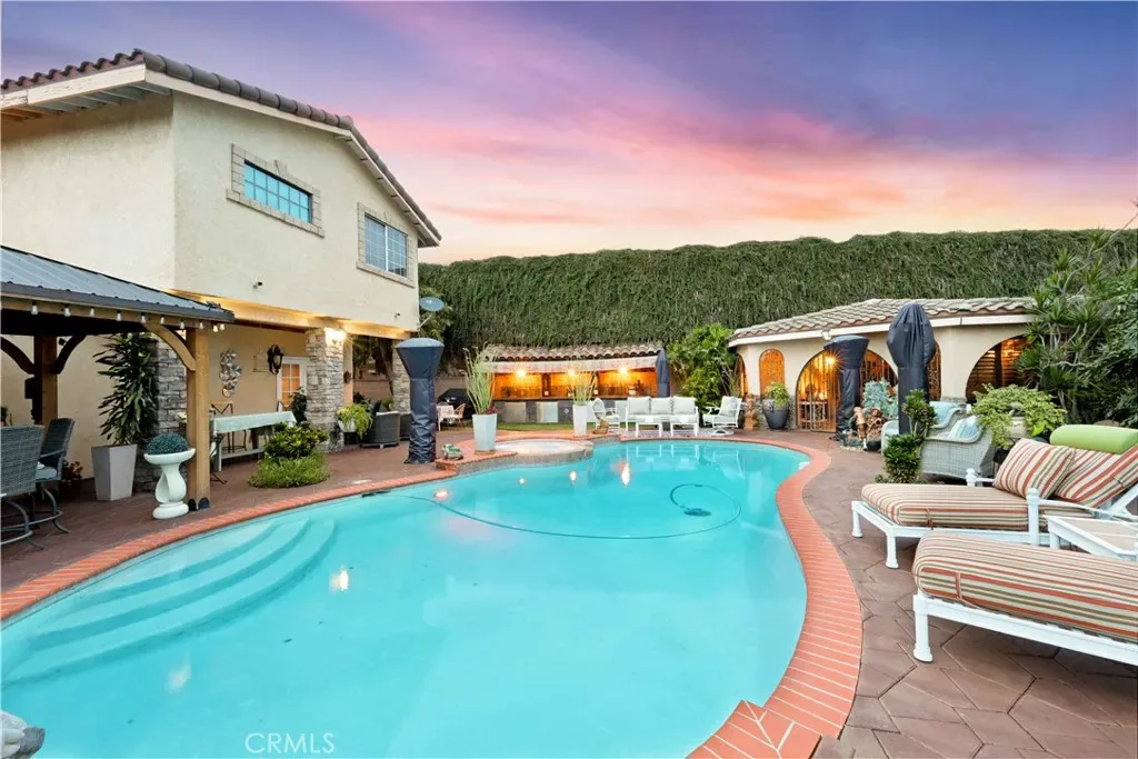 Located in the highly desirable North Downey neighborhood, this spacious 5 bedroom, 4 bathroom home blends elegance, comfort, and modern design. The home has impressive curb appeal with a stamped concrete driveway, stucco exterior with stone accents, a sharp tile roof, and a double wrought iron front door. The formal living room with fireplace and formal dining room create the perfect setting for entertaining or large family gatherings, while the family room features a built-in wet bar for relaxing in the evening. The remodeled chef’s kitchen showcases a large center island, premium appliances, high-end cabinetry, and abundant counter space. Top-of-the-line hardwood floors, coved ceilings, and architectural columns enhance the living areas with timeless character and modern sophistication. Upstairs, the expansive primary suite offers a private retreat with a jetted soaking tub, oversized tile shower, and dual walk-in closets. The backyard is truly an entertainer’s dream, complete with a resort-style pool and spa, fire pit, tranquil stream, gazebo, and lush landscaping with privacy trees. An impressive outdoor kitchen includes dual barbecue grills, commercial-grade hood, sink, and bar — ideal for hosting year-round. A rare opportunity to own a beautifully upgraded home on a large lot. This property is located close to the local elementary and middle school, has easy freeway access, and minutes from local restaurants and shopping.