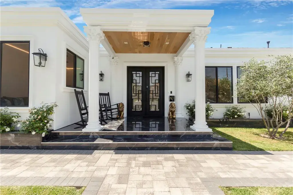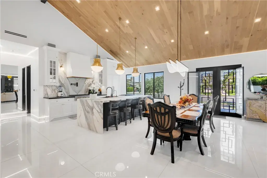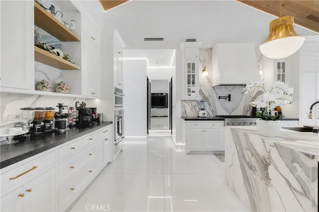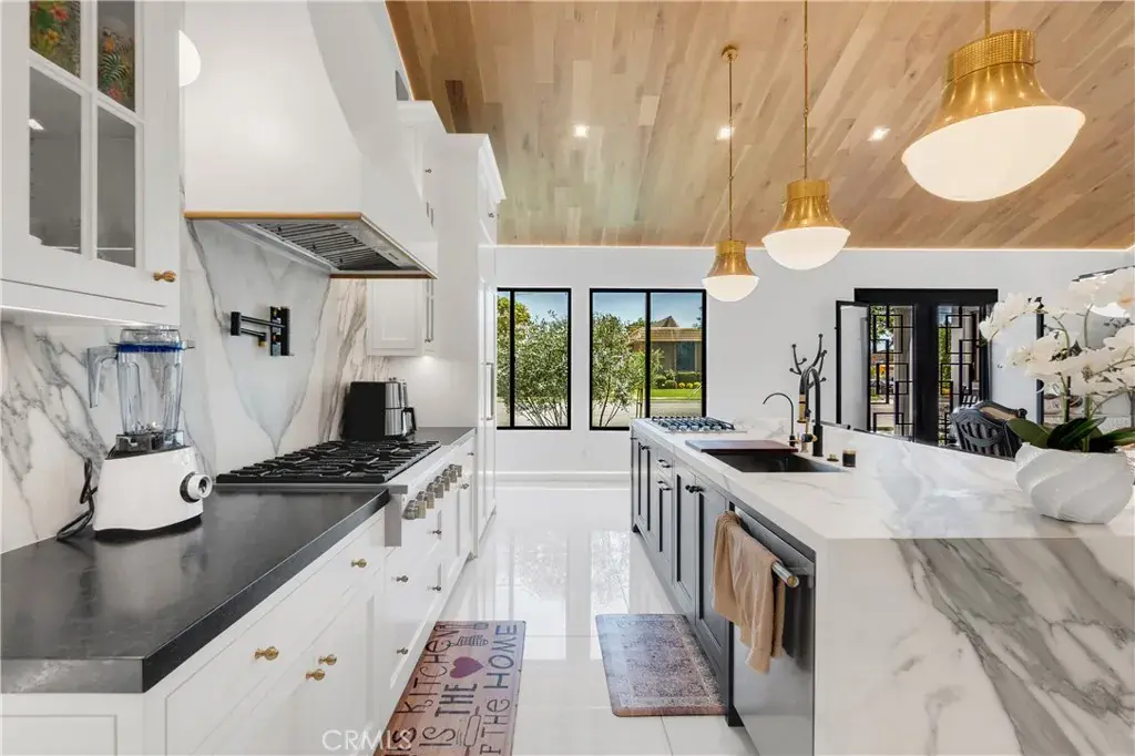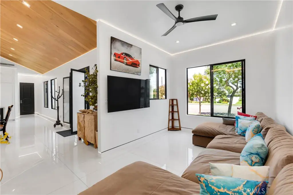 Welcome to this one-of-a-kind, newly built luxury estate nestled in one of Downey’s most desirable neighborhoods. Boasting 2,159 square feet of brand-new construction on an oversized 9,529 square foot lot, this exceptional 5-bedroom, 3-bathroom residence offers the perfect blend of timeless elegance and modern design. Every inch of this home was thoughtfully reimagined and constructed from the ground up with no expense spared. Step through grand custom double doors into a light-filled open floor plan featuring dramatic vaulted wood ceilings, oversized porcelain tile flooring, and exquisite LED mood lighting throughout. The designer kitchen is a true showpiece, highlighted by a massive waterfall island wrapped in rich marble, a built-in gas cooktop, custom white cabinetry, double ovens, and a separate coffee bar. Enjoy the convenience of a full bar area with built-in shelving and wine display, ideal for entertaining in style. The elegant dining area flows seamlessly into the spacious living room, complete with a custom black media wall, integrated fireplace, and built-in shelving. Expansive windows and glass doors create the perfect indoor-outdoor experience, leading to the covered patio with custom ceiling design and views of the oversized backyard ready for your dream pool or garden oasis. The home offers five generously sized bedrooms and three spa-like bathrooms featuring floor-to-ceiling marble finishes, walk-in showers with custom stone tile flooring, and luxury vanities. Additional highlights include: • Gated private driveway • Custom iron double entry doors • Designer lighting and fixtures • Oversized laundry/mud room • Two-car garage with modern glass doors • Fully landscaped front yard and spacious backyard with endless potential