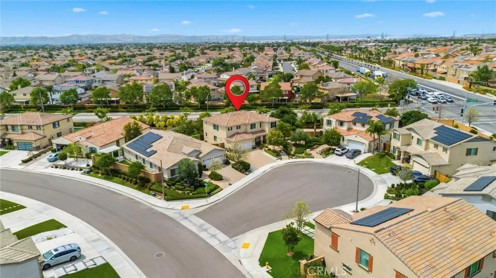Step into luxury with this stunning 2019 former model home, offering an unparalleled blend of elegance and convenience in the heart of Eastvale. Boasting a sprawling 6-bedroom, 5-bathroom layout—highlighted by two lavish master suites conveniently located on both the main floor and upstairs—plus a versatile loft, this residence is meticulously appointed with premium designer upgrades. Inside, discover custom wall coverings, elegant shutters, and a beautifully equipped kitchen featuring sleek quartz countertops and a complete suite of included appliances. Eco-conscious buyers will love the fully paid-off solar system, while the professionally finished backyard—complete with a built-in grill and a cozy fireplace—provides an idyllic setting for year-round entertaining. Perfectly positioned moments from the I-15 freeway, the upcoming Eastvale Civic Center, and downtown, this property is surrounded by premier retail hubs, top-tier schools, and neighborhood parks. It is the ultimate modern family sanctuary.