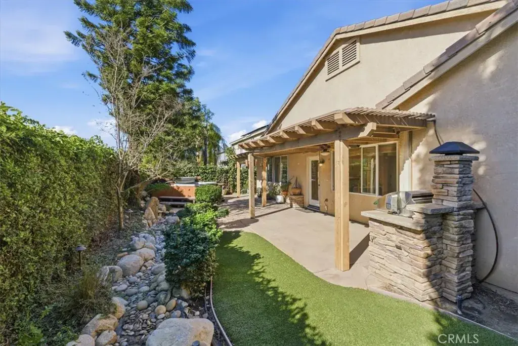 Tucked away on a quiet cul-de-sac in a highly desirable Eastvale community, this spacious single-story home offers a well-designed floor plan. The 4-bedroom, 2.5-bath home features a spacious and functional open layout ideal for both comfortable daily living and effortless entertaining. The interior includes expansive living and family rooms with high ceilings, a well-appointed kitchen with ample custom built in cabinetry, double oven, above range microwave, granite countertops, recessed lighting, and lots of counter space with an open flow that creates a bright, welcoming atmosphere throughout. Generously sized bedrooms provide flexibility for guests or a home office, while the primary suite serves as a private retreat complete with a cozy fireplace, an ensuite bath, walk in closet, jetted tub, stand in shower with custom tiled walls, double sink vanity, all providing a vast amount of space. Situated on a generous sized lot, the home offers a private backyard perfect for outdoor gatherings or relaxation, along with a custom above ground jetted tub, built in BBQ area, covered patio with ceiling fan, and lush green landscape. The attached multi-car garage provides ample parking and storage all with fresh paint and added epoxied floors. All paid large Solar panel system. Located within the Corona–Norco Unified School District, and conveniently close to parks, shopping, dining, and major commuter routes including the 91 and 15 freeways, this property blends space, comfort, and location in a sought-after suburban setting. This home is a must see!