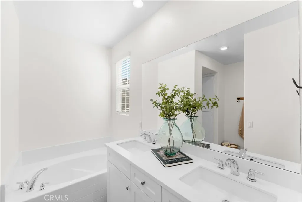 Upstairs features a versatile loft space, perfect for a home office, playroom, or additional living area. The spacious primary suite includes a walk-in closet and a bathroom with dual vanities, soaking tub, and separate shower. As a corner unit, the property boasts an oversized private backyard, offering rare outdoor space.