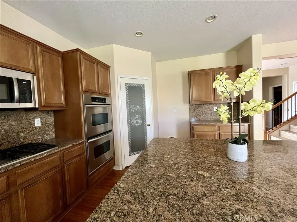 Located within walking distance to award-winning schools, this spacious 5-bedroom, 4-bathroom home sits in one of Eastvale’s most desirable neighborhoods, tucked away at the end of a quiet cul-de-sac on an expansive lot. Designed for both comfort and functionality, the home features a charming covered front porch, formal living and dining rooms, and a welcoming family room with a fireplace. The gourmet kitchen is equipped with stainless steel appliances, granite countertops, a center island, and a pantry, while a main-floor bedroom and full bath offer ideal flexibility for guests or multi-generational living. Upstairs, you’ll find a versatile loft, a generously sized primary suite with dual vanities, a soaking tub, separate shower, and dual walk-in closets, along with three additional bedrooms featuring new vinyl flooring and a convenient upstairs laundry room. The beautifully landscaped backyard is perfect for entertaining, complete with an Alumawood-covered patio, lush lawn, block walls, and mature greenery. Ideally located near shopping, parks, and freeway access, this home offers the perfect blend of location, lifestyle, and top-tier schools.
