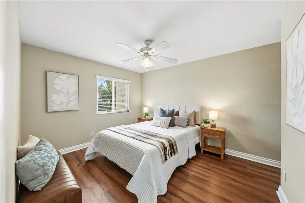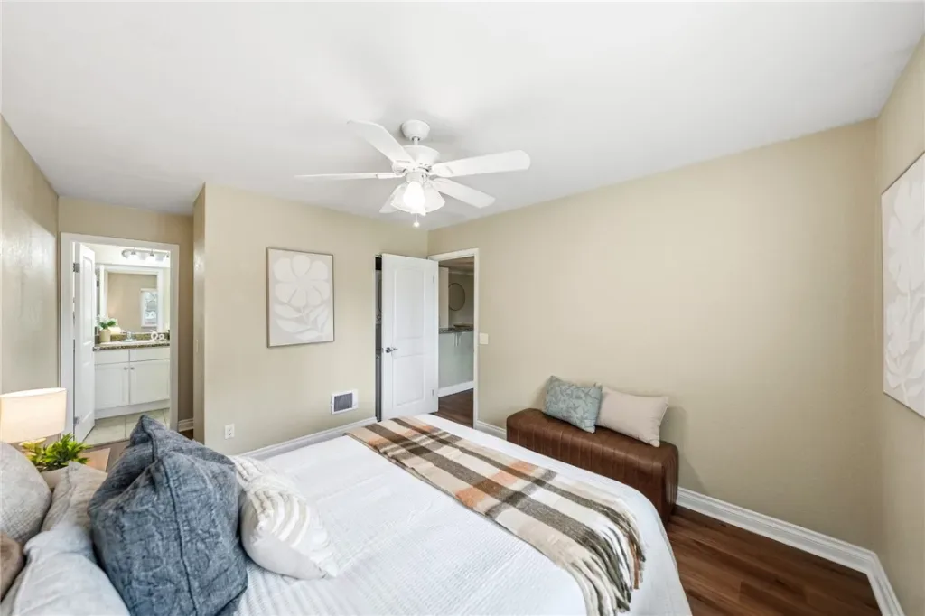 Welcome to this beautifully updated upper-level condo in the gated AlderWoods community of El Cajon, offering a lifestyle you’ll love. Ideally positioned near a lush grassy area, this home provides the perfect setting for pets, play, or simply enjoying the outdoors. As you arrive, a private staircase leads to your spacious balcony, an inviting spot for morning coffee or evening unwinding. Step inside to a welcoming family room filled with natural light from a large window, creating a bright and comfortable space to relax or entertain. The 801 sq ft layout is thoughtfully designed and enhanced with luxury vinyl plank flooring throughout and elegant crown molding. The kitchen has been refreshed with freshly painted white cabinetry, granite countertops, stainless steel appliances, and an eat-in bar, all opening to a cozy dining nook complete with a ceiling fan and light. The primary suite offers a walk-in closet, a brand-new stackable washer and dryer for added convenience, and an attached bath with a tub-shower combo. The secondary bedroom is versatile, ideal for a home office, guest space, or a child’s bedroom, and sits just across from the second full bathroom. Residents of Alderwood enjoy gated access along with amenities including a pool, spa, park, dog park and BBQ areas, while the HOA covers water and trash. Two designated parking spaces add everyday convenience, and VA and FHA approval opens the door for more buyers, creating an exceptional opportunity for accessible homeownership. Located just minutes from Parkway Plaza, a variety of dining options, and nearby parks and hiking trails, you’ll also love easy access to The Magnolia for live entertainment and Sycuan Casino Resort for a night out. With close proximity to major freeways and local colleges, this home offers the perfect blend of comfort, location, and lifestyle.