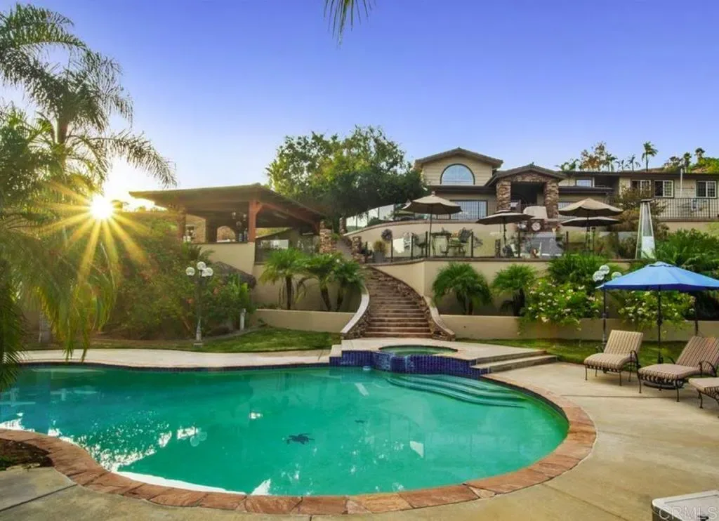 Welcome to one of Blossom Valley’s most iconic estates — a beautifully designed, built, and meticulously maintained 6-bedroom, 6-bathroom masterpiece spanning 5,362 sq ft on a private, gated 2-acre lot. Every detail of this home reflects quality and intentionality, from the high-end finishes throughout to the thoughtfully curated amenities inside and out. The heart of the home is a newly upgraded gourmet kitchen featuring a Sub-Zero refrigerator and refrigerator drawers, Dacor ovens, Bosch dishwasher, quartz countertops, a large island, self-closing cabinetry, and a built-in trash/recycling system — all open to the family room for effortless entertaining. Each bedroom enjoys its own full en-suite bath, while an upstairs game room and study area offer ideal space for work and play. The primary suite is nothing short of extraordinary — a private balcony with stunning views and an above-ground spa, a two-way fireplace in the luxurious bath, dual vanities, soaking tub, dual showers, and a walk-in closet that truly has to be seen to be believed. Outside, the estate continues to impress. The sport court is lit for night play, and the outdoor kitchen is outfitted with Lynx appliances — grill, cooktop, ice maker, and dishwasher — plus a walk-in pantry perfect for entertaining. Covered RV parking accommodates a full-size motorhome and a 28-foot boat. The expansive 4-car garage features a handyman’s dream workshop, dual EV charging stations, and abundant storage. A separate ADU/office provides the perfect flex space for guests, a home business, or multigenerational living. Owned solar panels keep energy costs in check. Behind the automatic security gate, this estate delivers a rare combination of seclusion, luxury, and functionality — just minutes from I-8 and all of San Diego’s best.