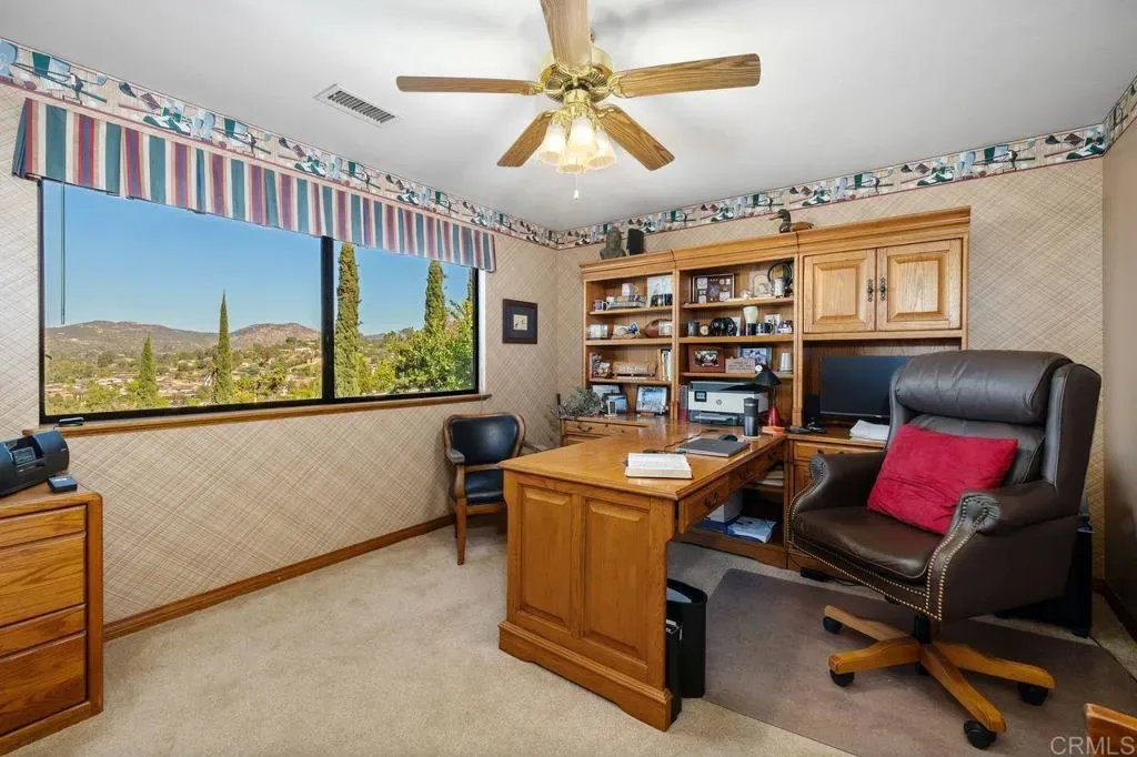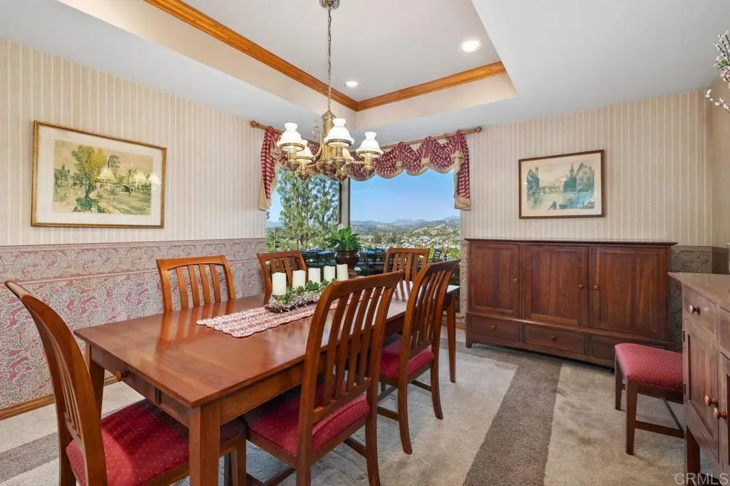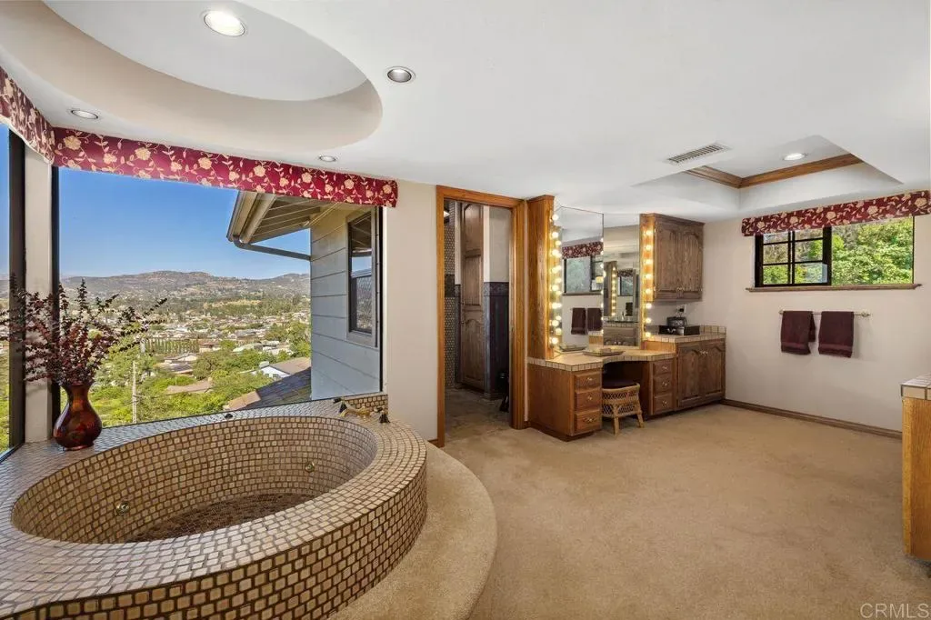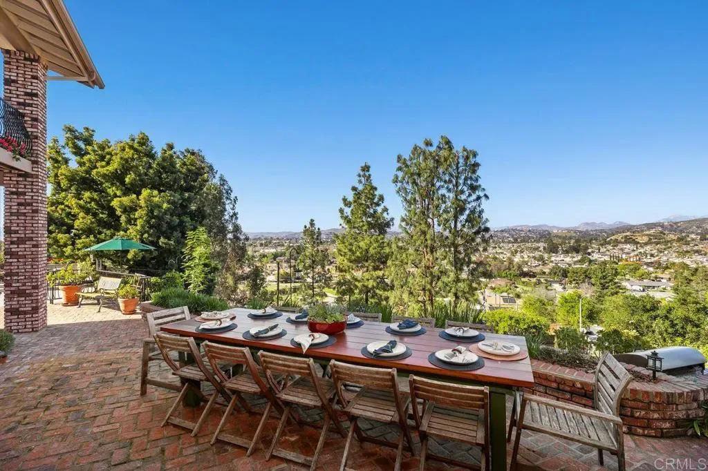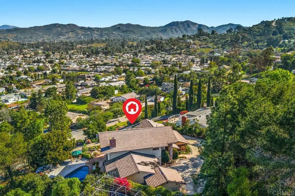 This Hilltop Hideaway is the perfect escape for those who want to get up, up, and away! The spectacular wood and glass design sits high above the valley and gazes out to the mountains beyond. The breathtaking, panoramic view is unobstructed all the way to the Cuyamaca mountains! You will wake up to the sunrise and end your day overlooking the twinkling lights below! Surrounded by graceful gardens, this custom two-story offers 3,339 square feet. The second floor is exclusive to the library loft and sumptuous primary suite with its adjoining deck. Pool, spa, and alfresco dining create your own private resort! The endless view is captured by mitered glass windows strategically placed to embrace the view. Jay Foltz designed this rare find, and all eyes were on maximizing the view for year-round enjoyment. The private pool and spa are always just steps away from dining alfresco or stepping into the shower. Relaxing with friends and family has always been easy here, with everything you need just steps away. The two extra rooms are perfect for a home office or hobbies. Don’t miss the garage and man cave! The design is versitile and the options are abundant. Meticulously maintained with numerous upgrades, including drought-resistant landscaping and irrigation. The pool equipment was recently replaced, and the pool was recently replastered. Escape to this private retreat and bring on summer! Make this dream your reality today!
