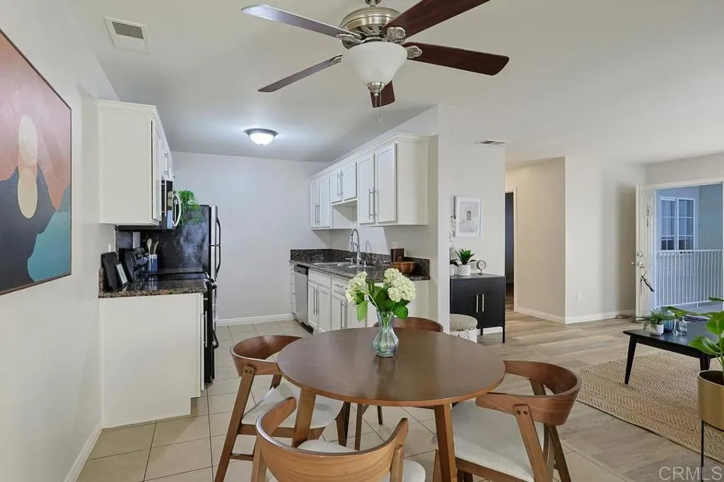 Updated and refreshed 3-bedroom, 2-bath upstairs condo in a centrally located El Cajon community. Recent improvements include new interior paint, updated flooring, modern kitchen hardware, a new dishwasher, and upgraded lighting fixtures, giving the home a clean and contemporary feel. The spacious kitchen offers great functionality and opens to the living and dining areas, creating an easy flow for everyday living. Enjoy abundant natural light throughout the home and step out to the lovely covered patio just off the kitchen, perfect for relaxing or enjoying your morning coffee. All three bedrooms are generously sized, offering flexibility for family, guests, or a home office setup. The gated building provides added privacy and includes one assigned uncovered parking space. Conveniently located within walking distance to shopping, dining, and everyday amenities, this home offers both comfort and accessibility. All measurements are approximate. Buyer and Buyer’s agent to verify all information prior to close of escrow.