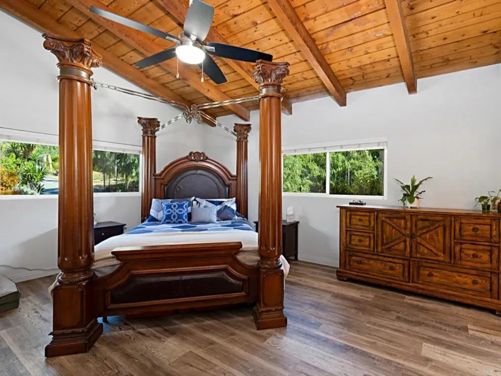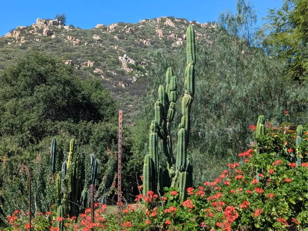 Tucked behind a gate and nestled inside an ecological preserve, this exceptional property offers 4.42 acres of pristine land, rare privacy, and breathtaking 360-degree views that won’t be jeopardized. It’s an escape, designed for both relaxation and entertaining. Enjoy sun-soaked afternoons by the pool, discover scenic vantage points, explore your own private hiking trails, with a trailhead marked by a stacked stone monument or unwind with a quiet picnic beneath mature trees or venture out to the woodworker’s shed, a fully enclosed creative retreat with generous workspace to start your next project. Inside this warm and inviting home is a sunny open kitchen, exposed beams, a striking brick fireplace, freshly painted interior, durable luxury vinyl plank flooring, and energy-efficient dual-pane windows. Skylights and large windows fill the space with natural light, while the flexible floor plan includes three upstairs bedrooms highlighted by a spacious primary suite. Downstairs, the private office or optional two-bedroom space is accessible by the spiral staircase or separate ground-level entry. From your own backyard enjoy an ever-changing wildlife experience. Hear birds chirping, watch hawks circling overhead, lizards basking in the sun, and owls nesting quietly in the owl box, bringing nature to life right outside your door. The landscape is a plant enthusiast’s dream, featuring specimen plumerias, Peruvian apple and prickly pear cactus, and agave plus California native plants. Watch olive, lime, lemon, blood orange, pomegranate and almond trees flower then see your own grapes ripen in the vineyard. Additional features include A/C, solar, newer roof, a 25′ x 26′ garage and ample parking for vehicles and recreational toys. A peaceful seasonal stream running below the property completes this rare blend of natural beauty, comfort, and calm.