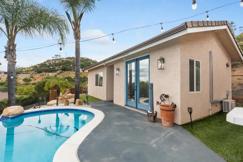 WILL NOT LAST! Experience refined country living in this stunning single-story retreat WITH AN ADU, set on a private 2+ acre lot. Showcasing breathtaking panoramic mountain and sunset views, this beautifully remodeled home offers the perfect blend of luxury, comfort, and functionality. The main residence features 4BR / 3BA, and a dedicated office, all thoughtfully designed with a bright, open-concept layout and seamless indoor-outdoor flow. A charming detached 900 sq. ft. ADU with 1 bed, 1 bath, and a full kitchen provides incredible flexibility—ideal for rental income, guests, or multigenerational living. Step outside into your private resort-style oasis, complete with an infinity-edge pool and spa, covered lounge deck, built-in BBQ, fire pit, and expansive turf area, perfect for year-round entertaining and enjoying Southern California’s lifestyle. This home offers multiple upgrades: new roof, new windows and pane, owned solar (20 panels), dual HVAC, skylights, and a pool house. Spacious 2-car garage complemented by an extended driveway suitable for RV parking, all within a fully fenced property. Located in the peaceful and scenic Crest neighborhood, this home offers privacy, tranquility, and space, while still being just a short drive from city amenities.