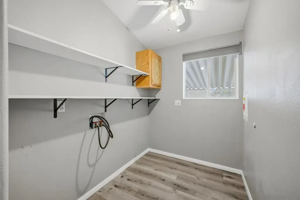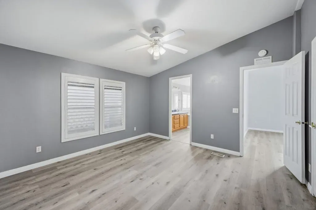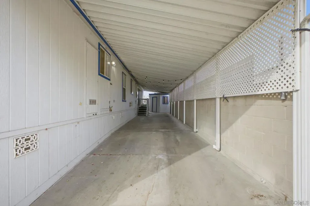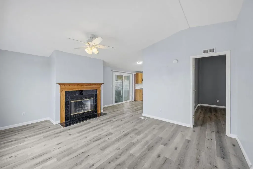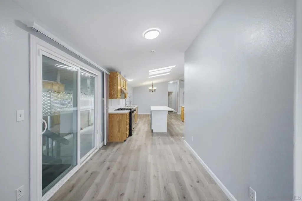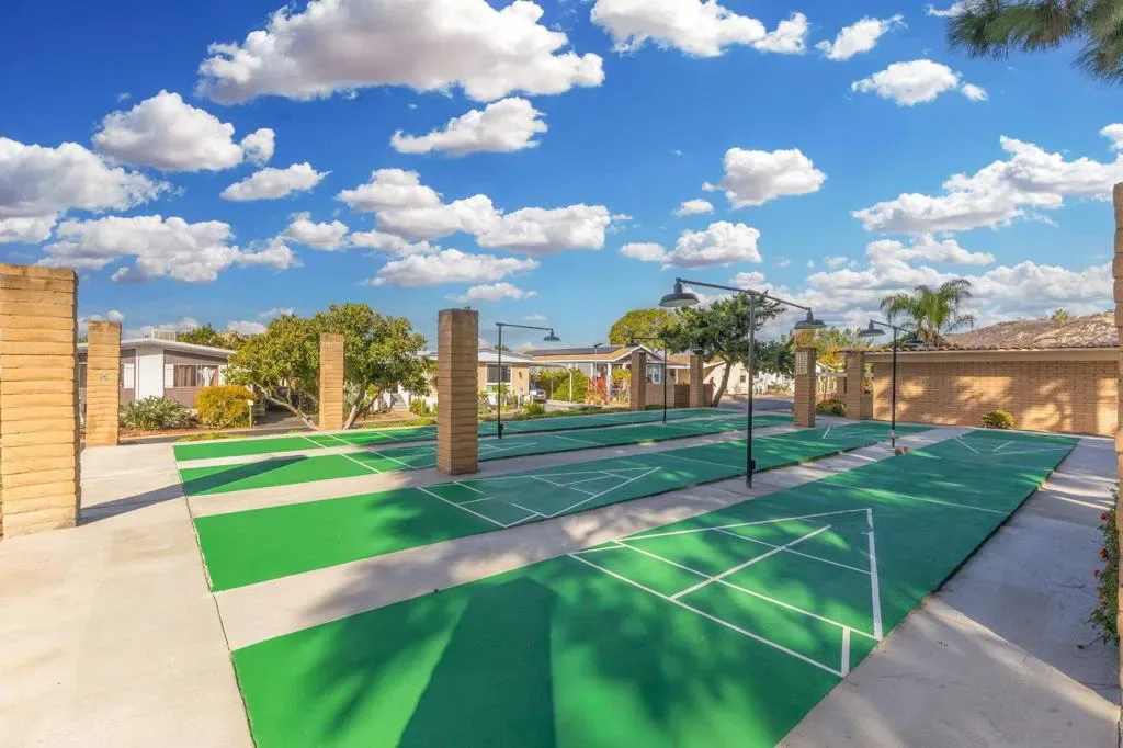 Space rent is $1,750 per month and includes water, trash, sewer, and access to community amenities. Estimated utility value is approximately $300 per month; buyer to verify all items included in the space rent. Welcome to this private corner home located at the end of the community, offering added privacy and convenient parking access. This remodeled 3-bedroom, 2-bath residence combines comfort, functionality, and a well-designed layout within the gated Rancho Mesa 55+ community. As you enter, you are greeted by an open floor plan connecting the living room, dining area, and upgraded kitchen. The home features updated flooring throughout, along with a remodeled kitchen offering ample cabinetry, modern appliances, and a center island ideal for both daily living and entertaining. The layout provides excellent separation of space, with two bedrooms and a full bathroom on one side of the home. On the opposite side, an additional living area with a fireplace offers flexibility for a second lounge, office, or entertainment space. Additional features include a pantry, dedicated laundry room, and an existing solar lease to be assumed by the buyer, currently approximately $170 per month. The outdoor area provides space for seating or entertaining, while the corner location enhances privacy and accessibility. Rancho Mesa is a gated 55+ community known for its well-maintained grounds and inviting atmosphere.