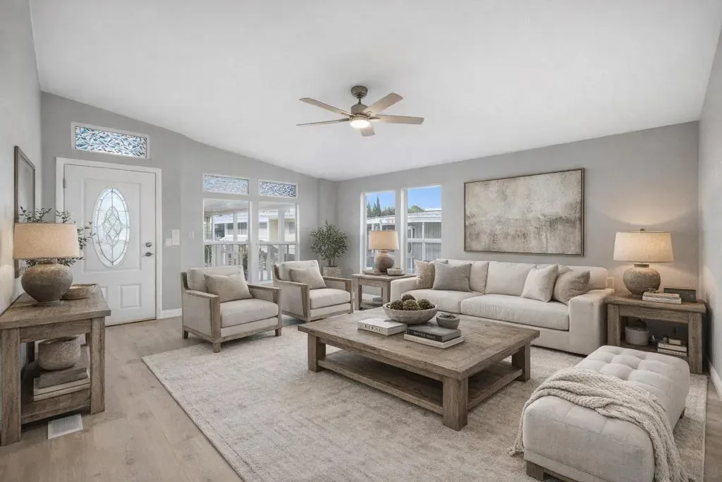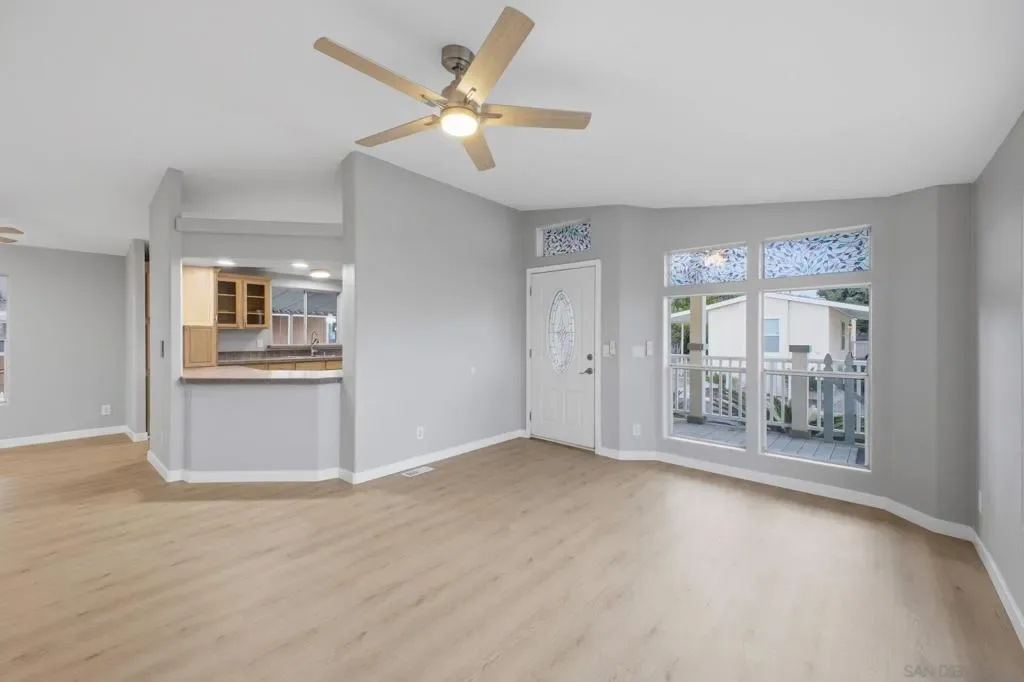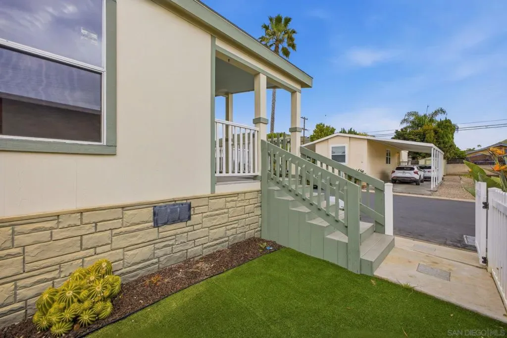 Welcome to this remodeled home located within the gated Rancho Mesa 55+ community. The front porch offers a comfortable outdoor space suitable for morning coffee, reading, or relaxing throughout the day. $1,750 Space Rent – Includes Utilities, Water, Trash, Sewer, and Amenities. Inside, the home features updated flooring, newer appliances, and refreshed interior finishes. The layout offers an open-concept living and dining area with natural light throughout, creating a bright and functional living space. The kitchen is positioned adjacent to the main living area and includes ample cabinet storage and included appliances, providing convenience for everyday use and entertaining. This home offers three bedrooms and two full bathrooms, allowing flexibility for guests, a home office, or additional living space. The primary bedroom includes an en-suite bathroom. The exterior includes landscaped areas and a private outdoor setting. The Rancho Mesa community features gated access and maintained common areas, with proximity to shopping, dining, and other everyday amenities.