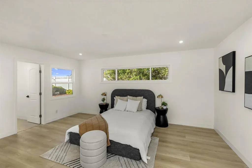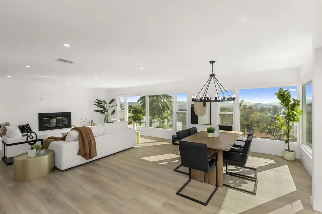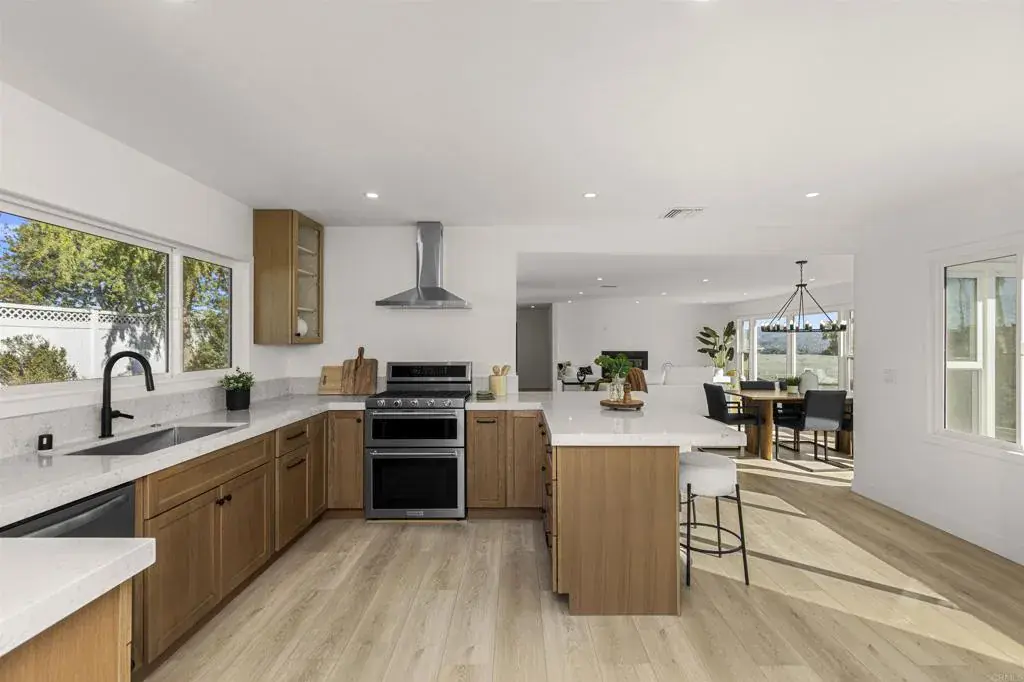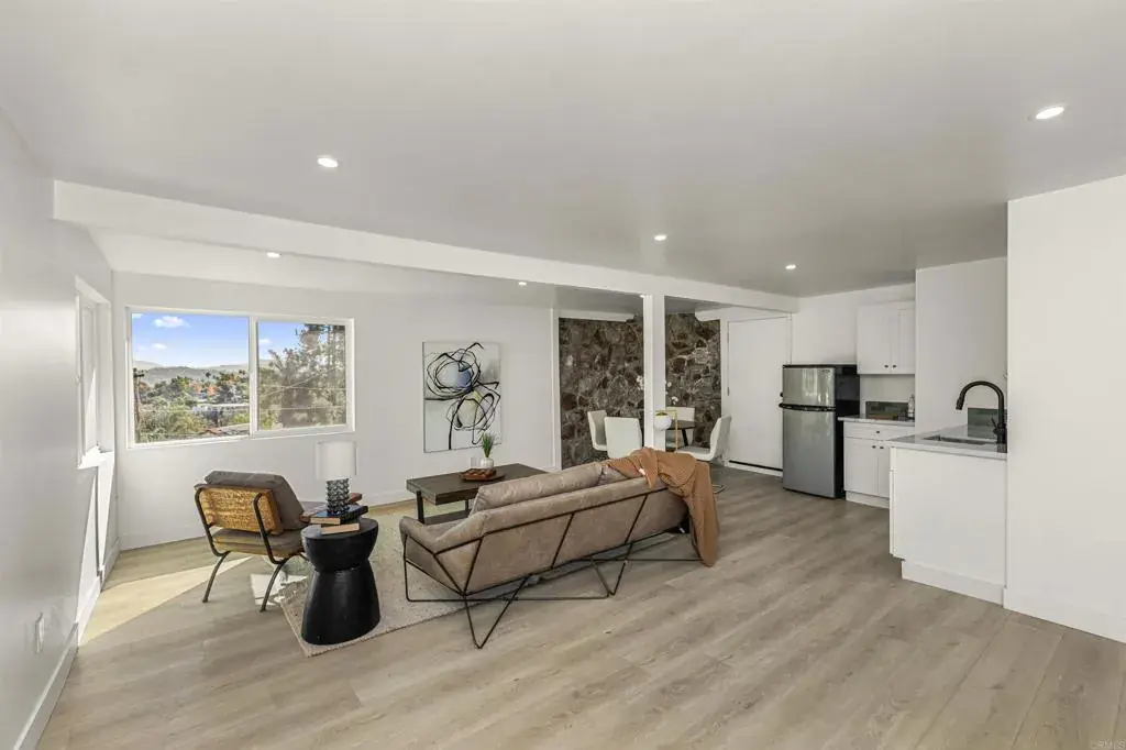Welcome to this exceptional Fletcher Hills residence. Meticulously remodeled and tucked away at the end of a quiet cul-de-sac, this stunning 4-bedroom, 3-bath home showcases breathtaking canyon views and a thoughtfully designed layout ideal for modern living, entertaining, and multi-generational flexibility. Adding tremendous value is a **Detached Studio** complete with a kitchenette and bathroom—perfect for guests, a private office, creative space, or potential rental income. The main residence features an open, light-filled floor plan enhanced by high-end finishes and designer details throughout. The chef’s kitchen is equipped with beautiful Lumataj Quartz Countertops and top-of-the-line appliances, seamlessly connecting to the main living areas for effortless entertaining. The bathrooms are elegantly finished with warm Zellige tile, adding timeless character and sophistication. There is also a finished basement with a full shower as additional flexible space ideal for a gym, media room, or bonus living area. Outdoor living truly shines at this property. Enjoy a large entertainment deck, ideal for gatherings while taking in the peaceful canyon backdrop. A newly installed low-maintenance turf pad adds to the outdoor appeal, while a rare, nearly flat and expansive pad offers endless possibilities—create a large backyard, add an ADU, or design the outdoor oasis of your dreams. Located in a top-rated school district and just minutes from shopping and dining. With premium upgrades, stunning views, and exceptional future potential, this Fletcher Hills gem is a rare opportunity to own a truly adaptable home in one of East County’s most desirable communities.