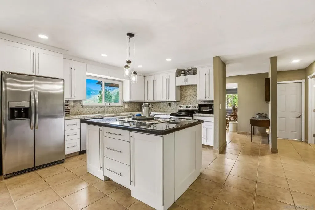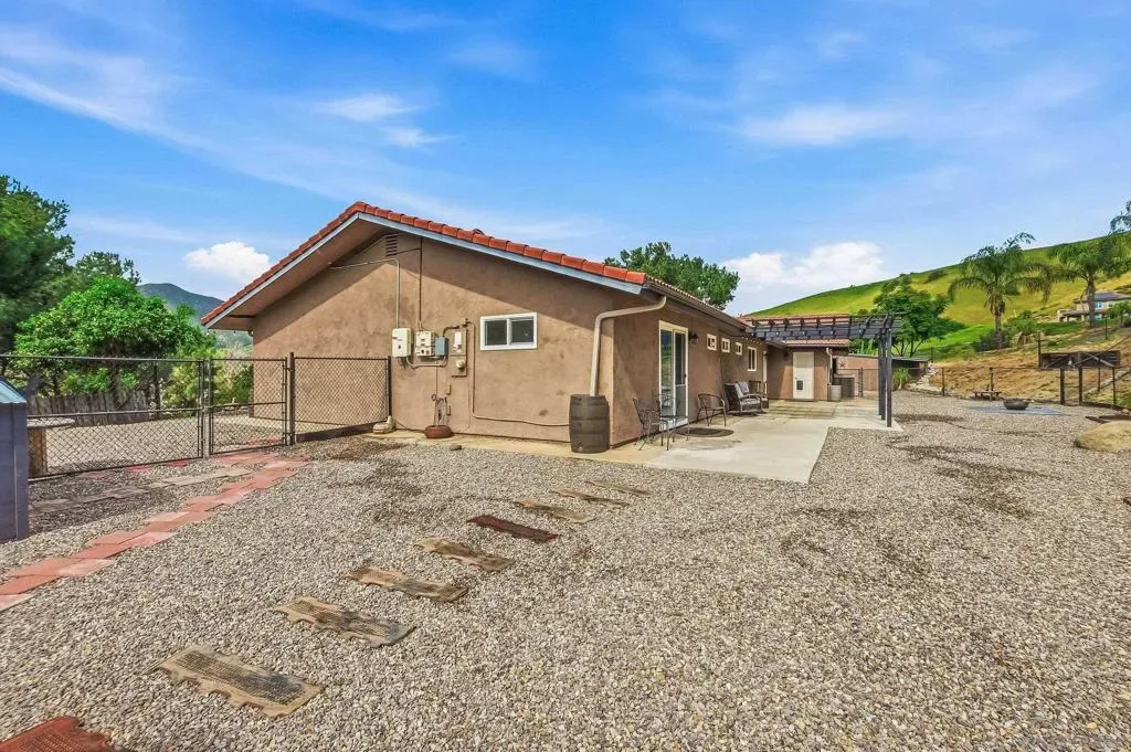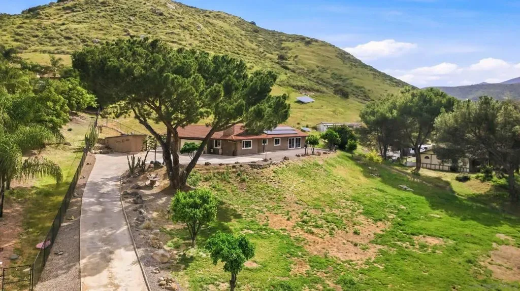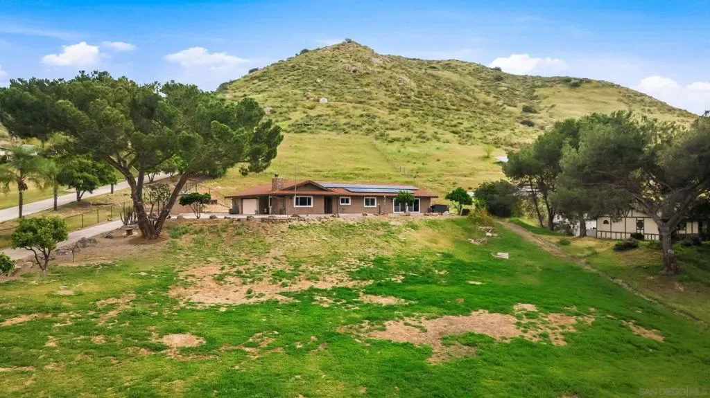 Couple photos are staged i.e. pool, (un-staged photos are also included * tagged). Embrace the tranquility of rural living without compromising on urban amenities with this stunning property at 1861 Vista De La Montana, El Cajon, CA 92019. Situated on over two acres of usable land, this fully upgraded and remodeled home offers a generous living space of 2,307 square feet and a lot size of 90,605 sqft. The house features three bedrooms and three bathrooms, including two master suites for added comfort and convenience. The spacious layout also includes two large family rooms – one being a new addition of 400 sqft that is fully permitted. A fireplace adds to the cozy ambiance, while a sizable dining area provides ample room for entertaining. The home has been thoughtfully updated with new tile flooring throughout, whole house fan, and new windows to let in plenty of natural light. In terms of utilities, the property boasts an all-electric system powered by 24 solar panels covering over 98% of all electric use. An efficient well provides clean water (with excellent testing numbers), virtually eliminating all utility bills (run the AC as long as you want and there is plenty of water from the well for the yard and house). From building a detached Accessory Dwelling Unit (ADU) or converting the garage into a Junior ADU to adding a custom pool and spa, the expansive lot offers endless possibilities. Located on a private road within a peaceful neighborhood, and minutes away from casinos, parks, schools, shopping centers, & restaurants.