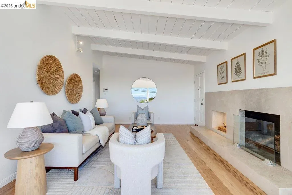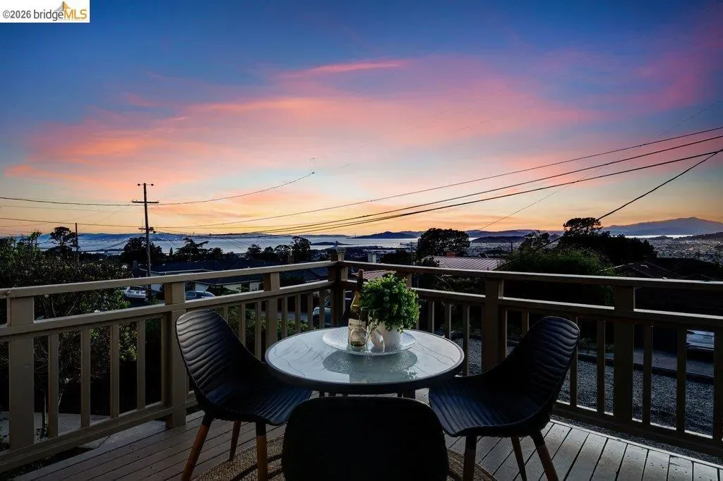 A beautifully refreshed single-level home offering 1,444 square feet of living space on a generous 5,750 square foot lot. This home backs up directly to the 13th green of the Berkeley County Club. A private entry porch with skylights leads into a sun-filled living, dining, and kitchen areas featuring stunning tongue-and-grove vaulted ceilings and sweeping panoramic views from the Bay Bridge to the North Bay. Enjoy unforgettable sunsets from the dining room deck, or relax in the thoughtfully designed outdoor spaces, including a side patio, garden pathway, rear deck, concrete patio, and upper “champagne deck” perfectly positioned for taking advantage of the sweeping views. The home features 3 bedrooms and 2 baths, including a rear primary suite with backyard access and a spacious hall bath with a jetted tub and separate shower. The home has been freshly painted inside and out, with refinished hardwood floors, and a large detached two-car garage. Ideally located near Berkeley County Club, scenic trailheads, Wildcat Canyon, shopping, BART, and major freeways. Zoned for Madera Elementary.