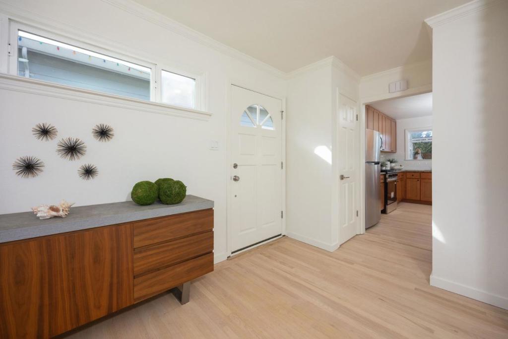 Discover coastal living in this beautifully updated single-story rancher in Lower El Granada. Thoughtfully refreshed throughout, the home features four comfortable bedrooms, refinished hardwood floors, recessed lighting, and a welcoming living room with a fireplace. The kitchen offers brand-new stainless steel Frigidaire appliances including a gas range, along with maple cabinetry and granite countertops. The hall bathroom includes a tub/shower, while the primary bathroom has been fully remodeled with floor-to-ceiling tile and a new shower stall with modern fixtures. A spacious garage plus additional carport parking provide excellent functionality. The backyard enjoys peaceful green-space views with no rear neighbors, backing up to open land. Ideally located moments from the Coastal Trail, Pillar Point Harbor, Surfers Beach, local restaurants, shops, cafés, and scenic hiking trails, coastal convenience and comfort come together in this El Granada gem.
