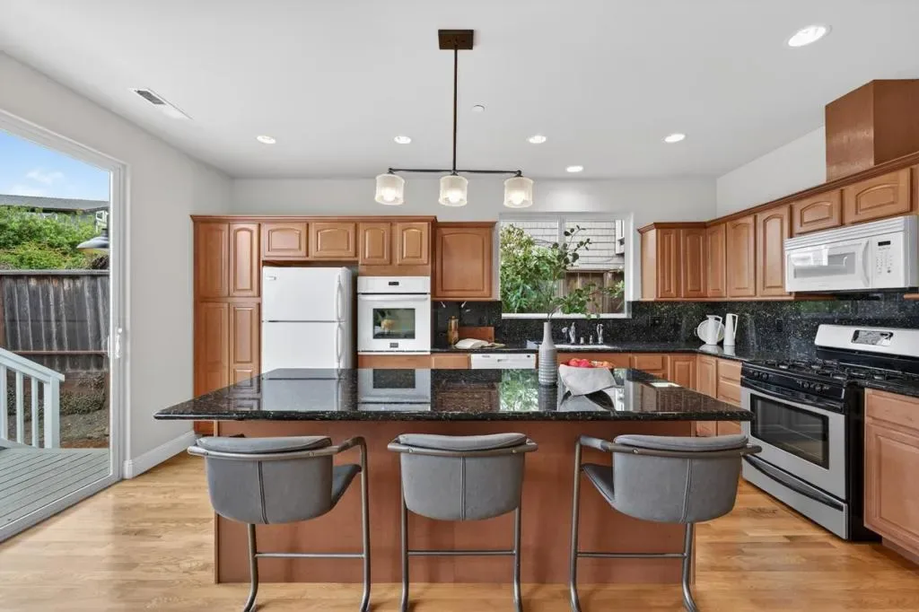 Tucked into the quiet hills of El Granada, this charming 2 bedroom, 2 bath home offers 1,410 sq ft of comfortable coastal living. Hardwood floors are featured in the living room, kitchen, and dining area, where a spacious layout and natural light create a warm, inviting atmosphere. The open kitchen showcases granite countertops and flows seamlessly into the dining space, complete with a gas fireplace that adds comfort and character for everyday living or entertaining. Step outside to a private backyard with a deck, ideal for relaxing or gathering, with partial ocean views. A two car garage provides added convenience. Located just minutes from Pillar Point Harbor, enjoy fishing, bird watching, and whale watching excursions. Nearby Princeton and Half Moon Bay offer beautiful beaches and well known dining spots, including Half Moon Bay Brewing Company, Barbara’s Fishtrap, and Jettywave Distillery. A wonderful opportunity to enjoy coastal living in one of El Granada’s most peaceful settings.