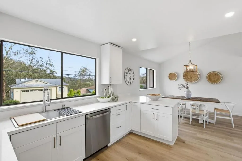 Welcome to this beautifully updated 3-bedroom, 2.5-bath El Granada Highlands home. Offering approximately 1,890 sq ft on a 5,581 sq ft lot, this move-in-ready property features a functional, well-designed layout with generous living spaces. The main living room just off the kitchen showcases vaulted ceilings, recessed lighting, fireplace and direct access to the decks, creating seamless indoor-outdoor flow and capturing peek-a-boo ocean and hillside views. The spacious floor plan provides comfortable separation between living and sleeping areas, offering flexibility for everyday living, dedicated work-from-home space, or hosting guests. The home has been updated with new luxury vinyl plank flooring, and refreshed painting throughout. The kitchen features new cabinetry, quartz countertops, stainless steel appliances. Enjoy serene eucalyptus forest vistas from this elevated Highlands setting. Located just minutes from Pillar Point Harbor, Surfer’s Beach, the coastal trail, mountain biking, shops and dining, this home offers the space, upgrades, and an ideal location.