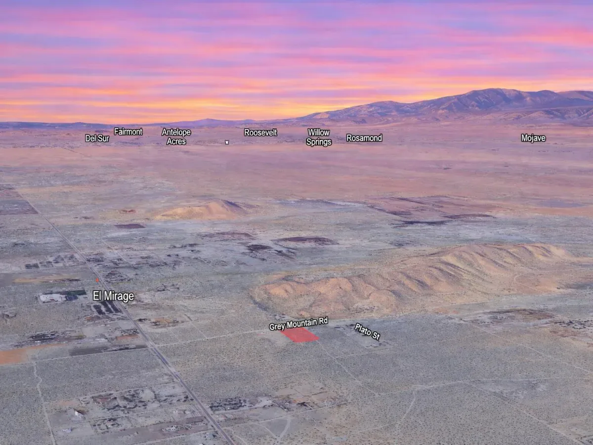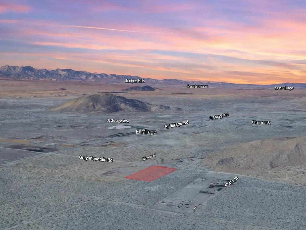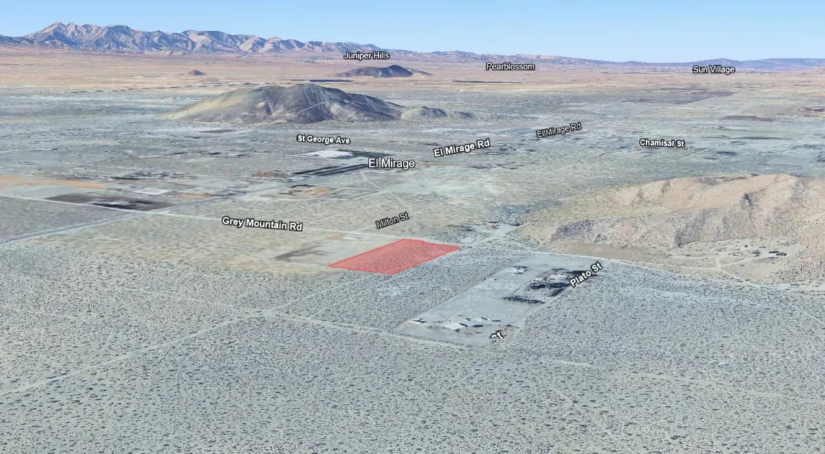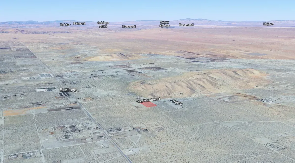 Own over 4 acres of wide-open High Desert land in the peaceful El Mirage area! This 4.25-acre residential parcel located on Grey Mountain Rd offers a great opportunity to build your custom home, create a desert retreat, or invest in land with long-term potential. Surrounded by expansive desert landscapes and scattered rural properties, the lot provides ample space for a residence, workshop, storage, or additional improvements (buyer to verify zoning, utilities, and potential uses with the appropriate agencies). Enjoy panoramic desert views, star-filled night skies, and the quiet lifestyle the High Desert is known for while still maintaining convenient access to nearby Adelanto, Victorville, and Highway 395 for commuting, shopping, and everyday amenities. With plenty of space and flexibility, this property is ideal for those looking to build now or secure acreage for the future.