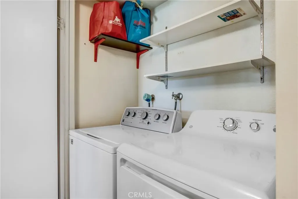 Inside, the home receives plenty of natural sunlight, creating a bright and welcoming space. The washer and dryer are conveniently located side by side in a closet. The bedroom is generously sized and comfortable.