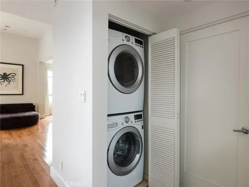 This beautifully updated 2 bedroom, 2.5 bathroom home offers just under 1800 sq ft of thoughtfully designed living space. The main level features new vinyl plank flooring, a private bedroom with an en-suite bathroom as well as two additional flexible spaces that can be used as a family room, office space, and/or a garage. The second floor showcases hardwood floors and an open-concept layout between the spacious kitchen and living room, complete with an electric fireplace. The kitchen itself has a large island, wine fridge, dishwasher, and plenty of storage.The spacious primary suite features a walk-in closet, a dual vanity bathroom, a large shower with seating, and a private balcony. A convenient half bath and stacked laundry are also located upstairs. The updated stairwell off the living room leads to a brand-new private deck with gas and water lines and electrical outlets—ideal for entertaining. Additional highlights include new Milgard windows, plenty of parking in the garage and/or carport, and ample storage under the stairs.