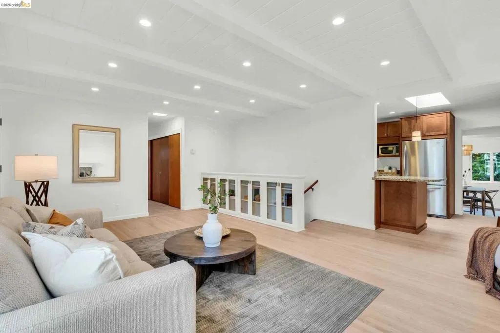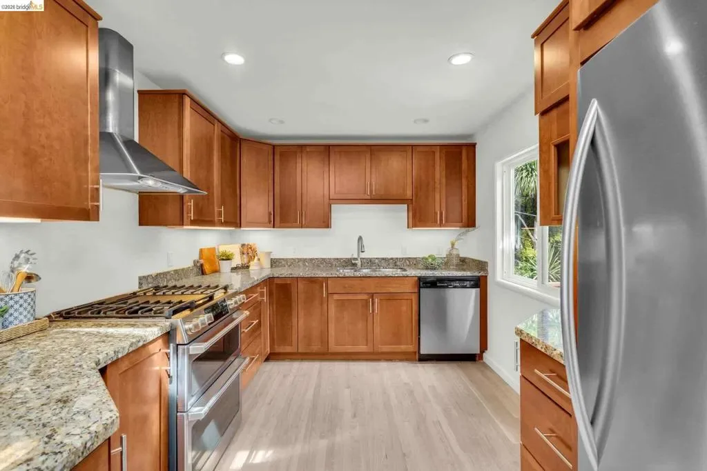 Nestled at the end of a quiet cul-de-sac and backing directly to Wildcat Canyon Regional Park, this home blends modern comfort with a serene, park-like setting in your own backyard abundant with fruit trees and blueberry plants. Plug in your electric vehicle inside the two-car garage, and walk upstairs to a warm and inviting living room with hardwood floors and a modern open layout leading seamlessly into a stunning updated kitchen with custom cabinetry, granite countertops and a breakfast bar serving as the heart of the home. A light filled dining room features direct access to the private backyard. Down a hall with floor to ceiling storage leads to two bedrooms, an updated bathroom with bathtub, and the oversized primary suite with ensuite bathroom and walk-in closet. Downstairs, find a bonus room perfect for home office, den, gym, or fourth bedroom. Exceptionally well maintained home with nearly $200k worth of improvements. Major upgrades include new roof with owned solar, new furnace & A/C system, insulation, smart drip irrigation system, and updated electrical with new Span smart panel. All together this home offers both peace of mind and peace of heart.