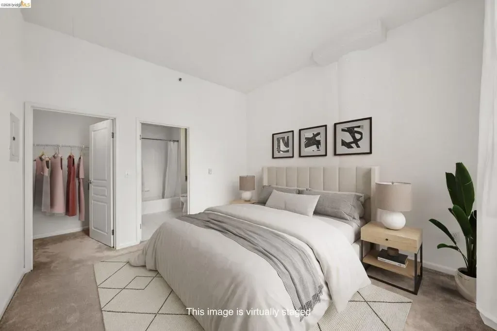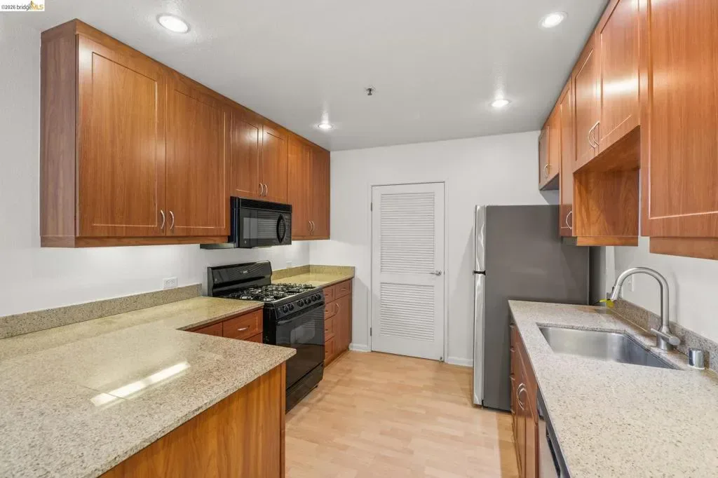 Welcome to Unit 613 at The Terraces, a Below Market Rate opportunity in Emeryville’s highly regarded community. This bright 1-bedroom, 1-bath (633 SF) features large windows and an open kitchen/living floor plan maximizing light and flow. Freshly repainted, the unit is clean and move-in ready. The spacious bedroom includes pocket doors that open to the living area for flexibility, along with a private en suite bath. The open kitchen offers ample cabinet & counter space, a new dishwasher, and a large pantry closet with in-unit washer/dryer. Two additional closets provide excellent storage. Overlooking an enclosed courtyard, the home enjoys a peaceful & vibrant commuter-friendly location. The building offers gated parking (+ guest spots), fitness center with sauna and locker rooms, business center, & private theater. Located near Bay Street, Emeryville Public Market, Trader Joe’s, cafes, restaurants, major employers, and one block from a free BART shuttle. San Francisco and Oakland are minutes away. *BMR unit subject to Resale Restriction Agreement. Buyer income must not exceed 120% AMI for Alameda County: 1p $134,250; 2p $153,400; 3p $172,600. OH March 15th, 22nd, 29th, 2-4 PM. Offers reviewed 4/3. If no offers received we will review as they come. Buyer to verify BMR eligibility.