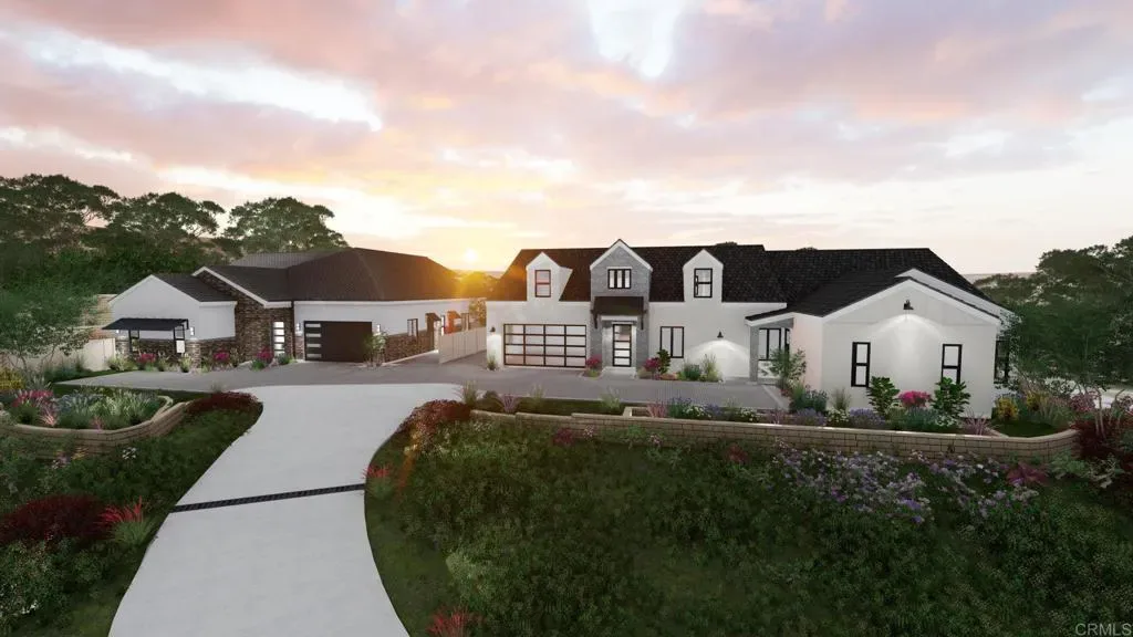 Introducing Berryman Canyon, a rare and exquisite opportunity to own a luxury estate in the making, perched above a secluded canyon in the prestigious Encinitas Enclave. This fully improved 0.71-acre homesite is masterfully positioned to capture sweeping vistas of dramatic canyons, rolling hills, and shimmering city lights, all just minutes from the I-5, upscale shopping, fine dining, top employment centers, and the iconic beaches of Southern California. Five years in the making, this custom-designed, single-level residence will span nearly 5,598 sq ft of elevated living, blending timeless architectural charm with sophisticated modern elegance. Approved plans feature 3,564 sq ft on the main level, including 4 spacious bedrooms, 3.5 spa-inspired bathrooms, a gourmet chef’s kitchen, café-style dining, expansive family room, oversized walk-in pantry, and a 2-car garage. The upper level adds 1,500 sq ft of versatile space, perfect for additional bedrooms, a private retreat, or a future 1,200 sq ft ADU, offers endless possibilities for a wellness studio, creative space, or luxurious guest quarters. Seamless indoor-outdoor living awaits with glass bi-fold doors opening to a resort-style courtyard featuring a sparkling pool, jacuzzi, fire pit, outdoor showers, and a built-in grill, ideal for elegant al fresco entertaining. Thoughtfully designed for multigenerational living, this estate offers both comfort and flexibility in a truly exceptional setting. Located near top-rated schools including Encinitas, Berryman Canyon is more than a home, it’s a lifestyle. Now is the perfect moment to connect, buyers have the exclusive opportunity to personalize finishes and bring their vision to life in this extraordinary coastal retreat. All renderings, plans, and descriptions are subject to change without notice. Square footage, features, and timelines are approximate and may vary. Estimated date to be completed in May 2026.