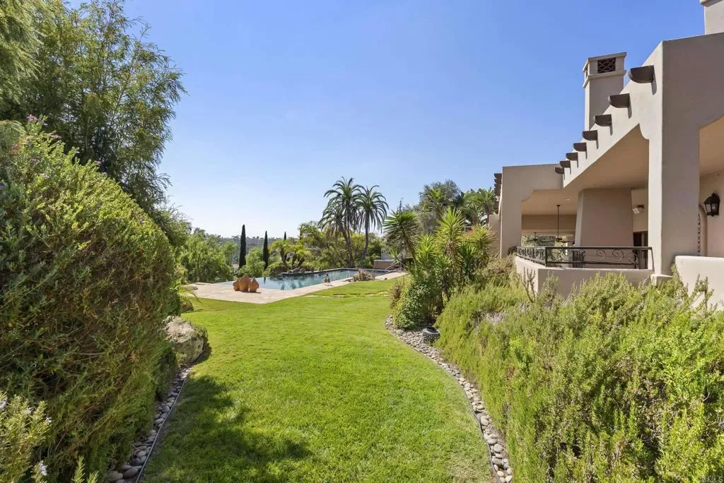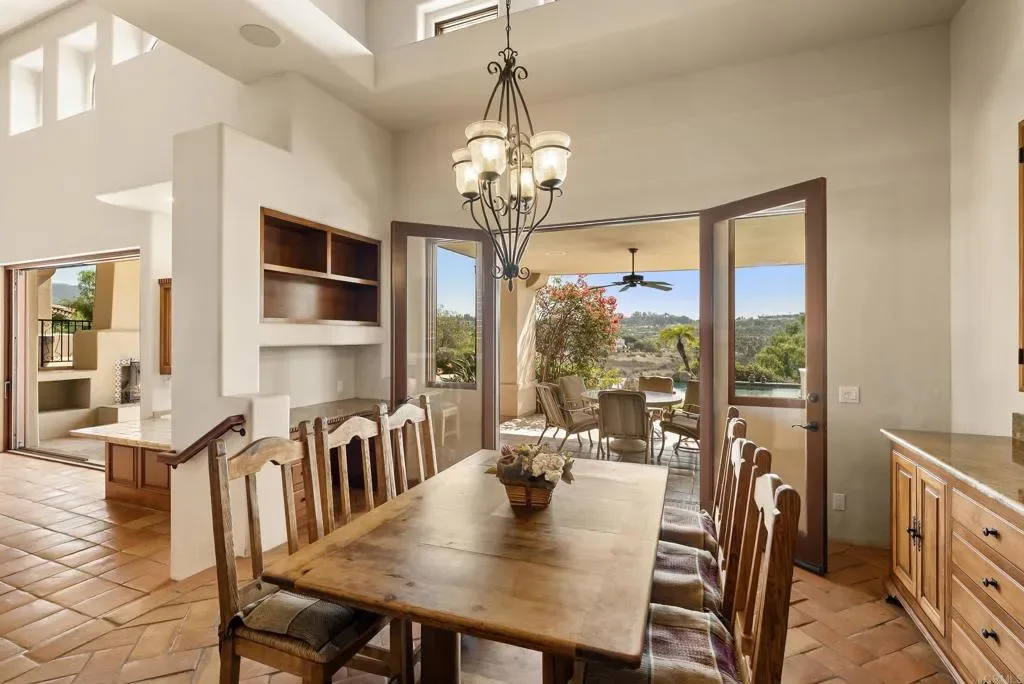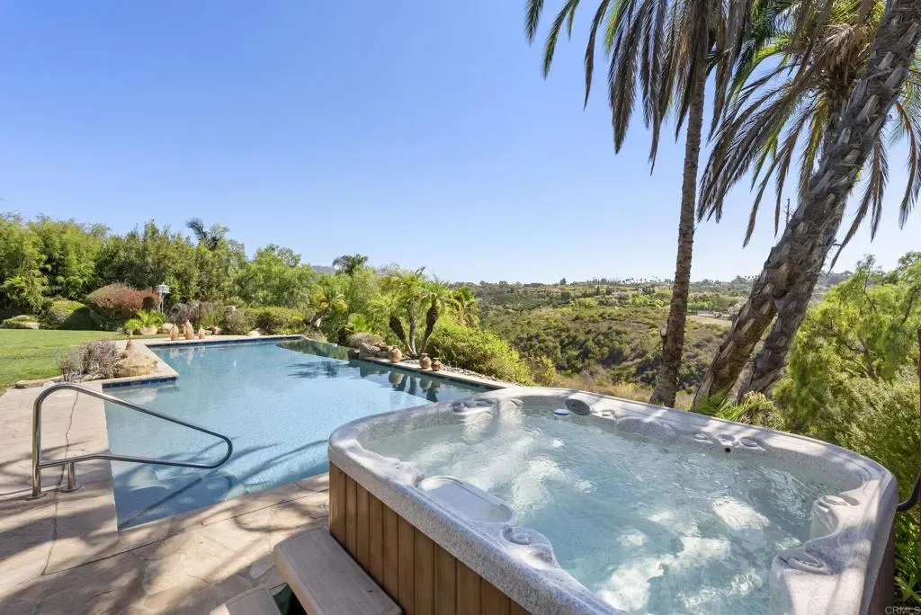Luxury Estate in Wildflower Estates – Olivenhain Property Overview Welcome to an extraordinary custom estate in the prestigious, manned-gated community of Wildflower Estates, where timeless architecture meets resort-style living. Situated on 2.1 private acres, this residence offers approximately 7,400 square feet of refined interiors, a detached guest house, and breathtaking panoramic views of Rancho Santa Fe and the Olivenhain valley. Designed for those who value both elegance and comfort, this property provides the ultimate Southern California lifestyle. Main Residence • Expansive floorplan designed with a primarily single-level layout, offering seamless living and accessibility. • A private upstairs studio, perfect as a creative space, office, or gym. • Soaring ceilings, oversized windows, and open living areas that maximize natural light and highlight the spectacular valley views. • Chef’s kitchen with professional-grade appliances, center island, and custom cabinetry designed for both functionality and entertaining. • Formal and informal living rooms, each with fireplaces, creating multiple spaces for hosting and relaxation. • Luxurious primary suite featuring spa-inspired bathroom, walk-in closets, and private retreat area. Detached Guest House • A fully independent 2-bedroom, single-level guest residence. • Ideal for extended family, guests, or private staff quarters. • Designed with the same level of finish and detail as the main residence, ensuring comfort and elegance. Resort-Style Outdoor Living • Sparkling pool surrounded by sun-drenched patios. • A fully equipped outdoor kitchen with pizza oven and built-in BBQ, perfect for entertaining year-round. • Expansive backyard designed for resort-like living, offering multiple lounging areas and lush landscaping. • Panoramic sunset and valley views provide a serene backdrop for both intimate evenings and large gatherings. Additional Features • 5-car garages with ample storage and motor court. • Located within one of North County San Diego’s premier gated neighborhoods, known for its exclusivity, equestrian charm, and proximity to top-rated schools, shopping, dining, and coastal beaches. • Gated privacy and security within Wildflower Estates, one of the region’s most desirable enclaves.