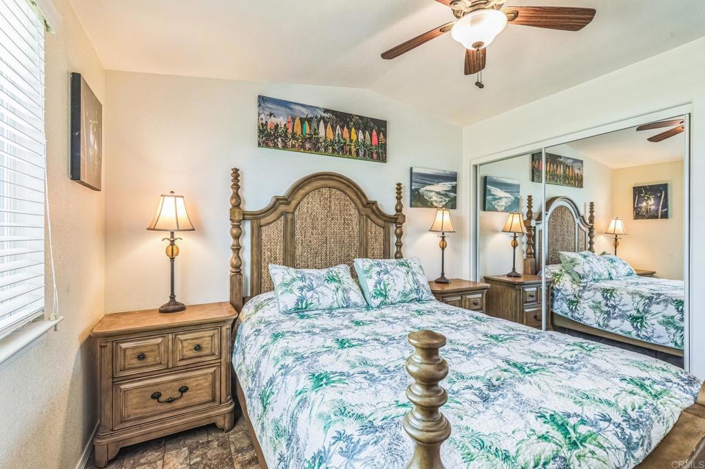 Tucked away in a peaceful corner of a beautifully maintained community, this charming home offers the best of relaxed coastal living just 0.4 miles from Beacons Beach. Perfect for beach-loving couples or anyone who craves the sand and sea, the location alone is hard to beat but it’s the thoughtful touches throughout the home that truly make it special. Step inside to discover a spacious, open-concept kitchen with bar seating that flows seamlessly into a light-filled living area, where large windows invite in the golden California sun. Whether you’re entertaining or enjoying a quiet morning coffee, this space feels effortlessly welcoming. The bedroom retreat is generously sized and equipped with both a ceiling fan and AC wall unit, ensuring comfort year-round. A stacked washer and dryer tucked into a convenient laundry closet keeps daily chores simple and efficient. Recent upgrades include a nearly new water heater, updated plumbing fixtures, and wood blinds throughout, giving the home a fresh, modern feel while maintaining its coastal charm. Outside, the low-maintenance landscaping surrounds a private patio and deck, ideal for sunset dinners or surfboard waxing sessions. There’s also a large shed perfect for storage or a weekend workshop and an attached carport with two parking spaces, plus three visitor spots conveniently located right next door. Set within a friendly, all-ages park with a clubhouse, pool, and recreation room, you’ll enjoy a true sense of community without the burden of HOA fees. With restaurants, shopping, and freeway access nearby, this home is the perfect blend of tranquility and convenience. To make it yours, buyers must qualify with 3x the monthly space rent. This is more than a home t’s a lifestyle. Peaceful mornings, surf-filled afternoons, and the comfort of knowing you’ve found your own little piece of Encinitas paradise.