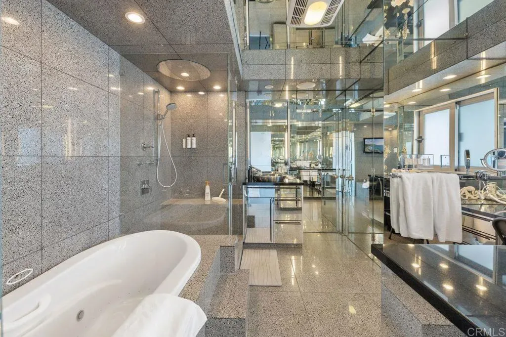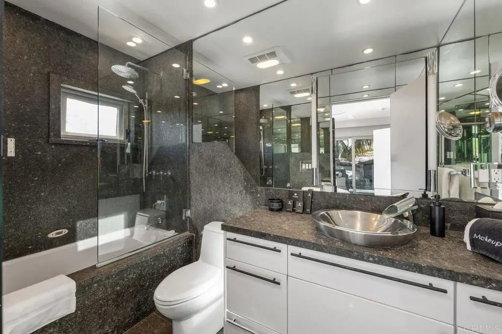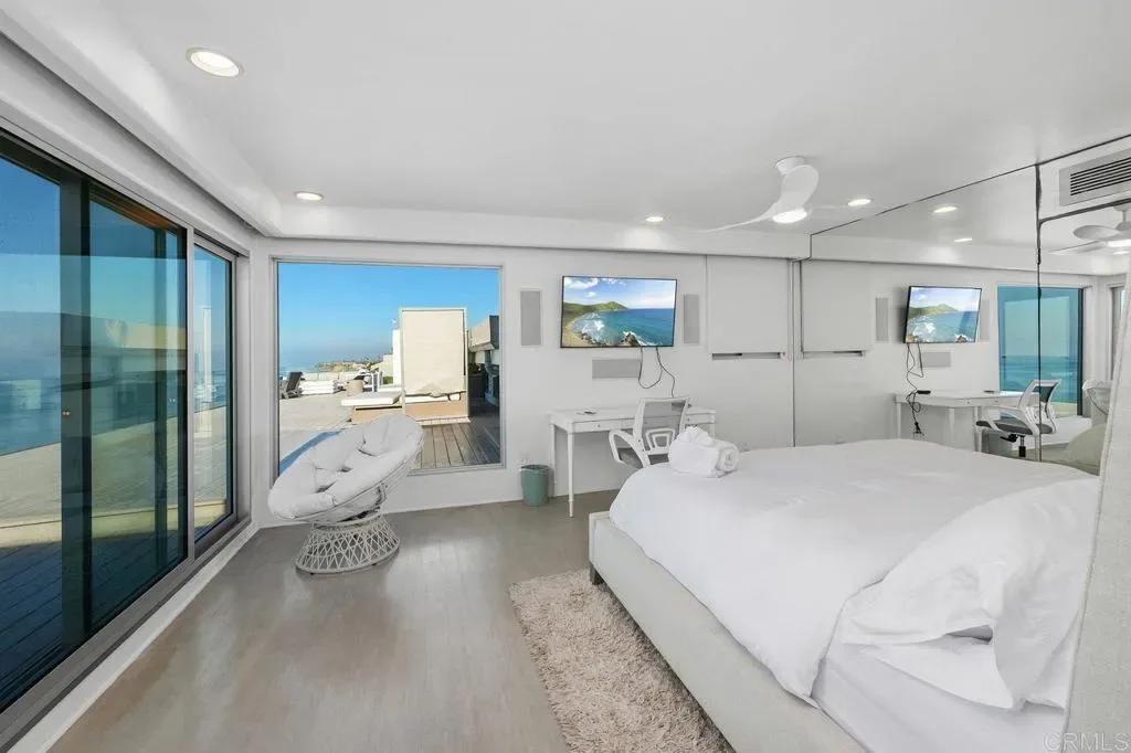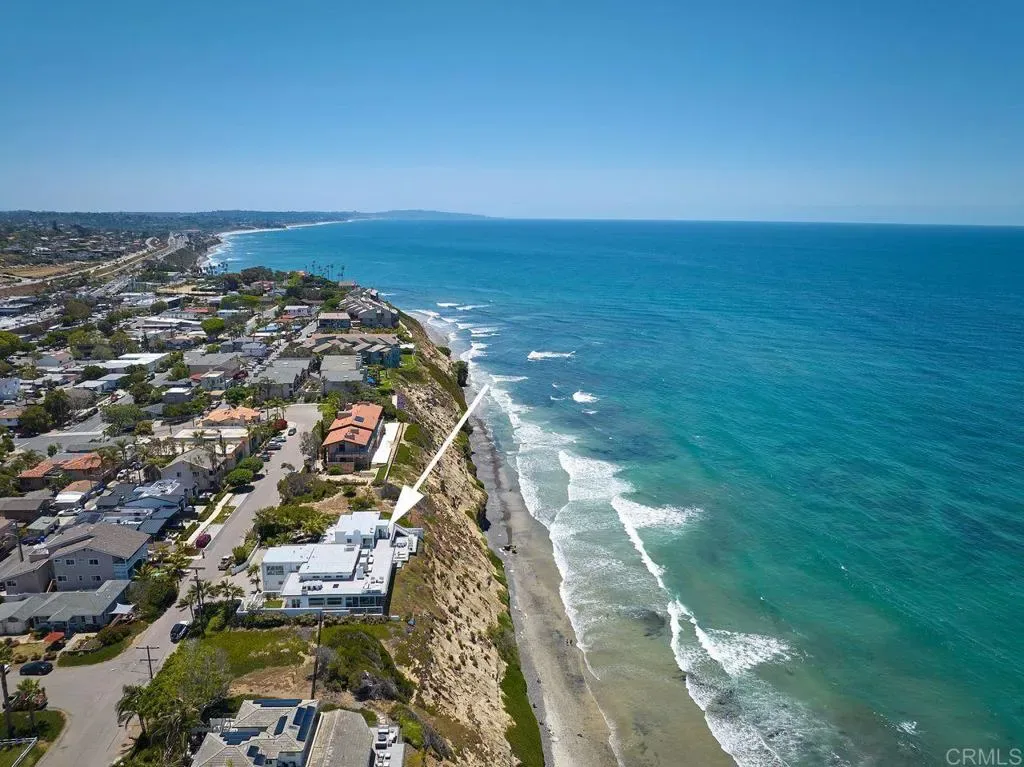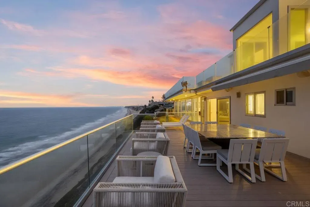 Experience coastal elegance at its finest with this rare 100-foot oceanfront estate in the heart of Encinitas. Perfectly positioned on a private bluff with unobstructed views from La Jolla to San Clemente, this property offers unmatched privacy thanks to empty lots on both sides. Step through a gated entry into a world of sophistication, where a dramatic fire and waterfall feature sets the tone for this architectural masterpiece. The home boasts 2,400 sq. ft. of brand-new ocean-view decking, creating multiple entertaining spaces to soak in panoramic sunsets and city lights. Inside, discover a massive living area with floor-to-ceiling ocean views, a cozy fireplace, and a complete bar for entertaining. The gourmet kitchen, featuring its own fireplace, flows seamlessly to an outdoor BBQ area—ideal for hosting gatherings. Unwind in the saltwater pool and grotto, or enjoy the tranquil koi pond and tropical landscaping. The primary suite offers breathtaking ocean views and a spa-like ensuite, while additional bedrooms include designer bathrooms and private sitting areas. An attached ADU with full kitchen, bath, and laundry provides flexibility for guests or extended family.