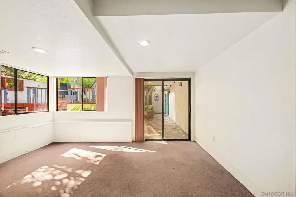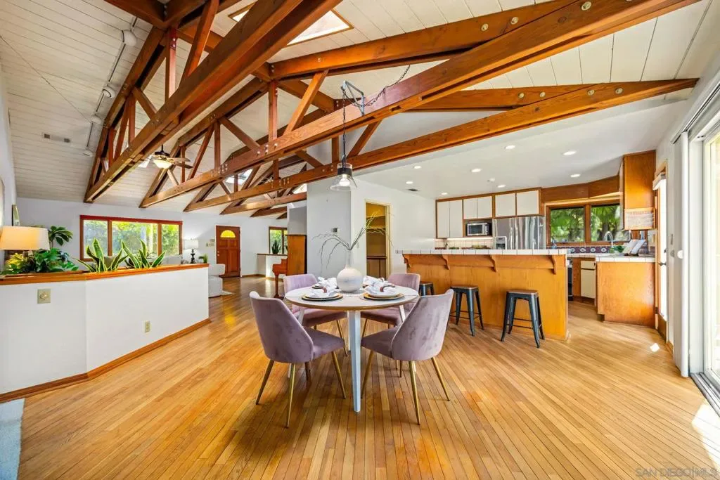 An amazing opportunity to own a truly special, one-of-a-kind home set on nearly an acre of beautifully maintained land. From the moment you enter, you’re welcomed by stunning vaulted beamed ceilings, rich wood flooring, and two charming brick fireplaces that create a warm and inviting atmosphere. The main floor features a spacious primary bedroom with an ensuite bath complete with a walk-in shower and double sinks, while two additional bedrooms down the hall share a well-appointed full bath. The family room flows effortlessly off the formal dining room and showcases unique architectural details that add character and charm. The lower level is an entertainer’s dream, offering a custom bar, wine cellar, sunroom, and an enclosed outdoor patio perfect for year-round enjoyment. Meander outside and explore the incredible grounds, filled with mature fruit trees and lush grassy areas that provide both beauty and privacy. This property also includes an attached three-car garage, a detached two-car garage/barn/workshop, both providing abundant storage throughout. Experience the best of beach living in a prime location in Encinitas, just minutes from North County’s stunning beaches, Lazy Acres, Breweries, downtown Encinitas, and Fox Point Farms, all within highly desirable school districts. This is a rare find that combines space, character, and location—don’t miss your chance to make it yours!