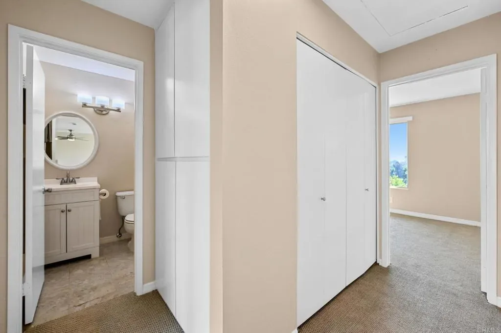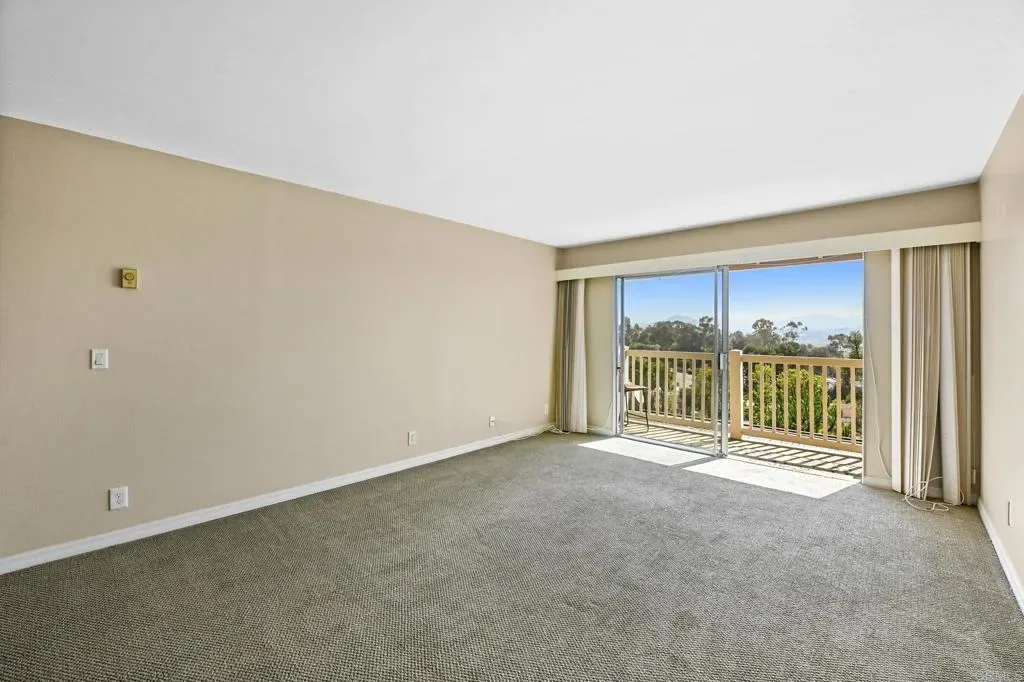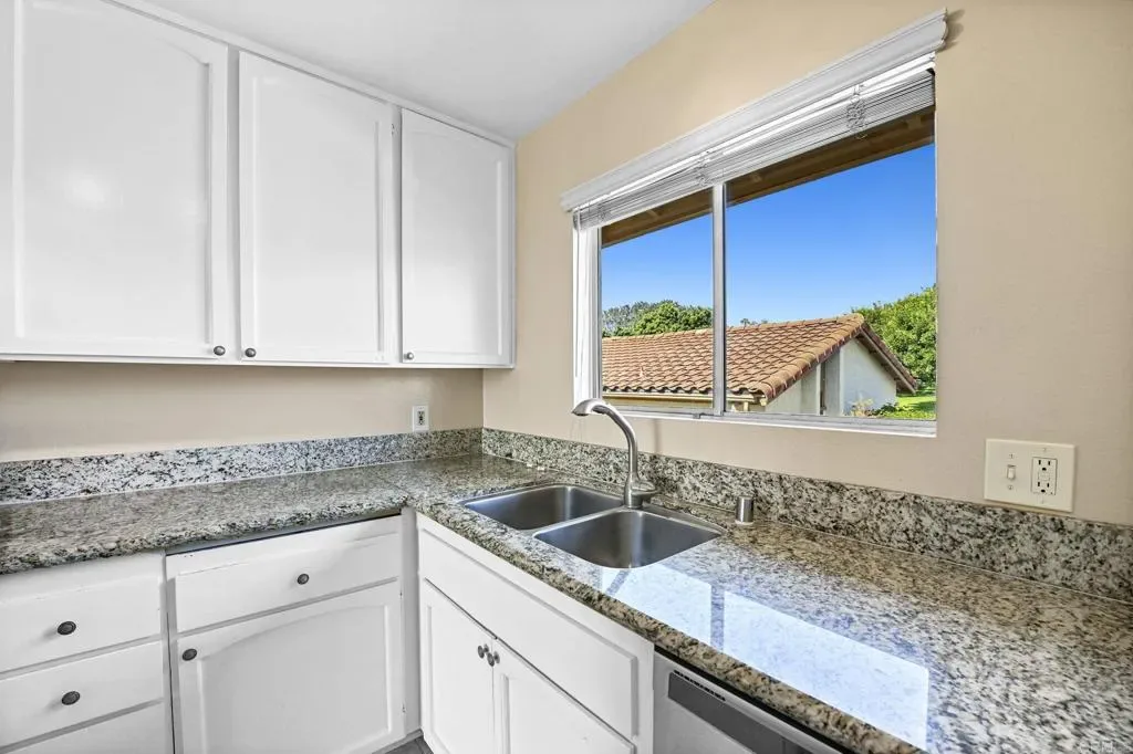Best location in the development! Step into panoramic gorgeous Encinitas mountain views in this highly desirable quiet location in High Country Villas. Directly across the street from the beautiful 9 hole golf course, pickleball, pool and clubhouse. Upper unit with 2 bedrooms 1 bath home with no neighbors behind you. All new electrical panel just completed. Flooring, bathroom cabinet, lighting and kitchen counter tops all done. Popcorn ceilings removed. This single level town home is in a 55+ community that offers golf, swimming pool and spa, hiking/biking trails, clubhouse activities such as bocce ball, aqua aerobics, exercise classes, clubs and much more lifestyle and friendship. Less than 4 miles to moonlight beach and close to award winning shopping, dining, and medical. Enjoy unbelievable sunsets from the front of the property and follow the colors in the sky over the mountains from your private balcony in the back. Views from every window including golf course views, mountain views and hot air balloon views. Morning sunrises over the mountains are spectacular! Priced to sell so come see asap! Excellent rental with great possiblilites.