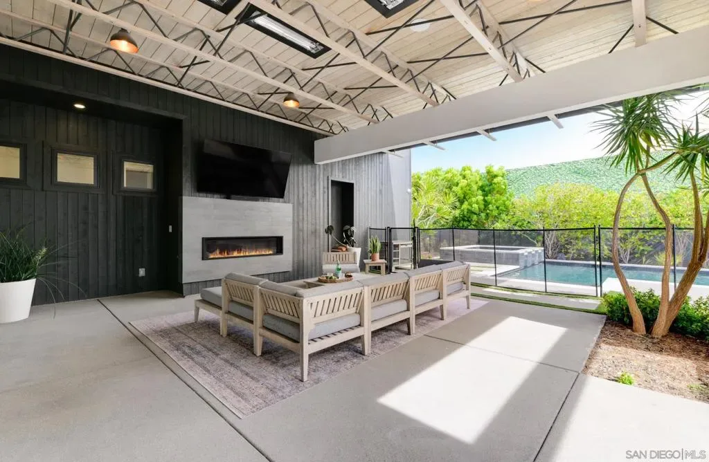 A 2020-built modern farmhouse in sought-after West Olivenhain, this custom estate blends industrial-inspired architecture with refined contemporary design on a large private lot. Designed for seamless single-level living, the home offers 1,150 sq.ft. of covered outdoor space overlooking a resort-style pool and spa. Dramatic ceilings, Fleetwood and LaCantina doors, and premium Marvin windows create effortless indoor–outdoor flow throughout the open-concept living spaces and chef’s kitchen. The thoughtful layout features a private primary suite and two bedrooms—including an office with separate entrance—on one wing, with two additional en-suite bedrooms on the opposite side. Resort-style amenities include smart home technology, integrated indoor/outdoor surround sound speakers, EV chargers, an oversized garage, and expansive grounds with an outdoor kitchen, lawn, and space for a garden or orchard. A dedicated wellness retreat features a Hume sauna system, Core Chill Blue Cube cold plunge, shower, heated towel bar, plus an additional ~150 sq.ft. space with a half bath and outdoor shower. Additional upgrades include InfraTech outdoor heaters, additional solar panels, solar tubing for the saltwater pool, whole-home water filtration, and security cameras—all controllable from your phone. The home also offers new custom primary closets and electric blinds throughout, completing this exceptional modern coastal retreat.