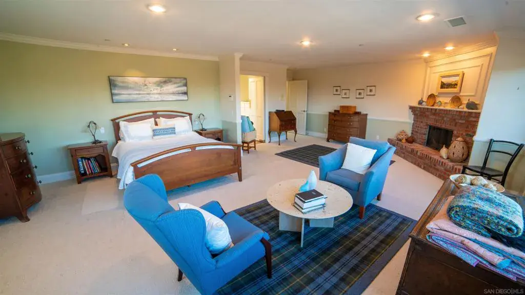 One foot in the ranch and one foot in the sand—this custom Olivenhain estate offers peaceful, open-space living just minutes from Encinitas beaches and coastal amenities. Positioned to capture southeast-facing morning light, the home is filled with natural brightness and a calm, serene atmosphere throughout the day. The residence offers 4,774 square feet with five bedrooms and five bathrooms, featuring cherry hardwood floors, raised hearth brick fireplaces, electronically operated skylights that enhance light and comfort at the touch of a button. Anchoring the main living space, the expansive kitchen offers a highly functional layout with two gas ovens, a Sub-Zero refrigerator, and dual dishwashers, providing both scale and efficiency for serious cooking and entertaining. Designed with comfort, flexibility, and privacy in mind, the residence offers two ensuite bedrooms on the main floor and three additional ensuite bedrooms on the second level—ideal for multigenerational living, hosting, or remote work lifestyles. One entry-level suite opens through double doors to the pool patio and garden, offering an inviting indoor–outdoor retreat. Outdoors, a custom infinity-edge pool anchors the private grounds, creating a resort-style setting surrounded by mature landscaping and open skies. Additional highlights include owned solar panels and an electric vehicle charging station. Situated on 0.6 acres with no HOA, this is a private and thoughtfully designed home offering serenity, and coastal proximity.