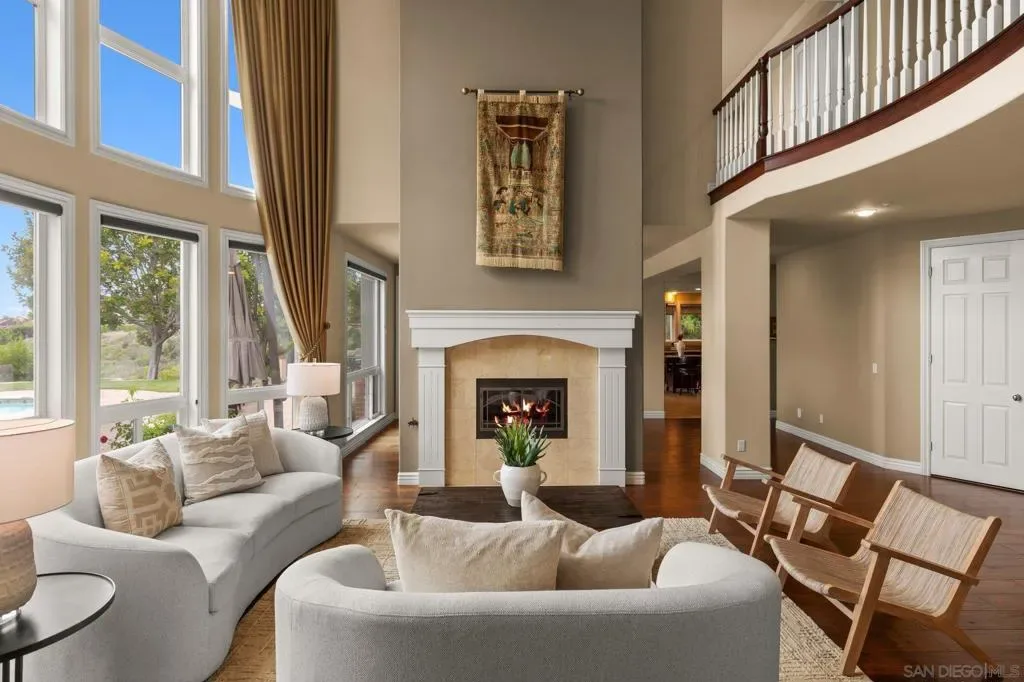 Stunning and serene, this two-acre estate is tucked at the end of a private cul-de-sac in Knightsbridge Country Estates, one of Olivenhain’s premier gated communities. With sweeping southwest views, this 5,500+ sq ft residence embodies quiet luxury through timeless design, classic architecture, and thoughtfully designed living spaces. A dramatic dual staircase entry opens to a soaring, light-filled living room with expansive windows that capture the home’s southern exposure and surrounding landscape. The main level offers exceptional versatility, featuring a guest suite with private entrance and bath, ideal for multigenerational living or a home office, along with formal living and dining rooms, a spacious family room, and a custom wine room. The gourmet kitchen is equipped with stainless steel appliances, a large center island, and a butler’s pantry, seamlessly connecting to the family room and outdoor BBQ area for effortless entertaining. Upstairs, the primary suite offers a private view balcony, walk-in closet, and a luxurious dual-sided bath. Three additional bedrooms and a flexible bonus room provide space for a variety of lifestyles. The grounds offer a resort-style setting with a pool, expansive outdoor areas, and two detached structures. An oversized four-car garage, owned solar, and full city services complete this exceptional property at an exceptional price! Stunning and serene, this two-acre estate is tucked at the end of a private cul-de-sac in Knightsbridge Country Estates, one of Olivenhain’s premier gated communities. With sweeping southwest views, this 5,500+ sq ft residence embodies quiet luxury through timeless design, classic architecture, and thoughtfully designed living spaces. A dramatic dual staircase entry sets the tone, opening to a soaring, light-filled living room with expansive windows that capture the home’s southern exposure and surrounding landscape. The main level offers exceptional versatility, featuring a guest suite with private entrance and bath, ideal for multigenerational living or a home office, along with formal living and dining rooms, a spacious family room, and a custom wine room. The gourmet kitchen is designed for both function and connection, complete with stainless steel appliances, a large center island, and a butler’s pantry, seamlessly opening to the family room and outdoor BBQ area for effortless entertaining. Upstairs, the primary suite is a private retreat with a view balcony, a walk-in closet, and a luxurious dual-sided bath. Three additional bedrooms and a flexible bonus room provide space for a variety of lifestyles. The grounds offer a resort-style setting with a sparkling pool, expansive outdoor areas, and two detached studio or gym structures. An oversized four-car garage, owned solar, and full city services, including sewer, water, and maintained streets, complete this exceptional property at an exceptional price. A rare opportunity to enjoy scale, privacy, and refined living in one of Olivenhain’s most sought-after gated communities.