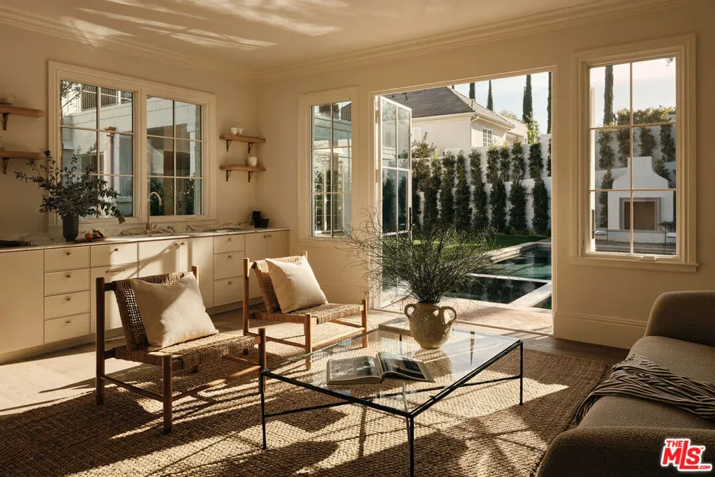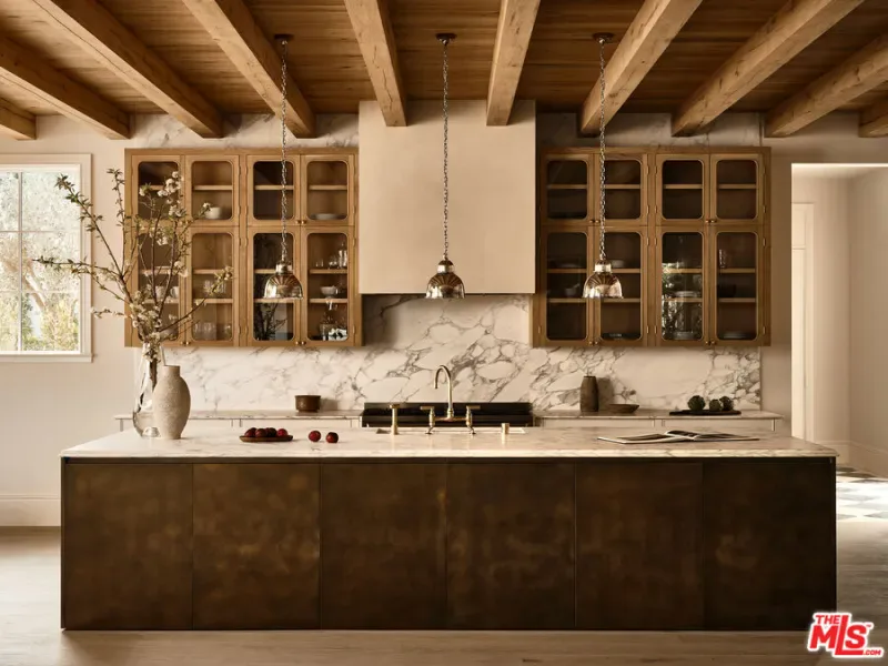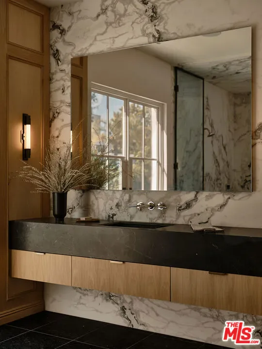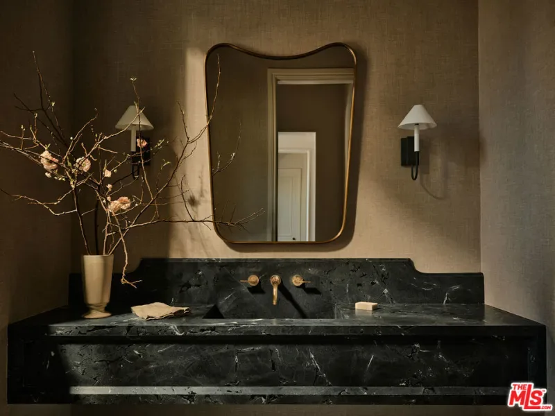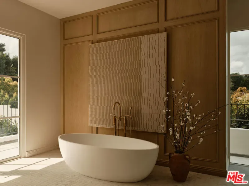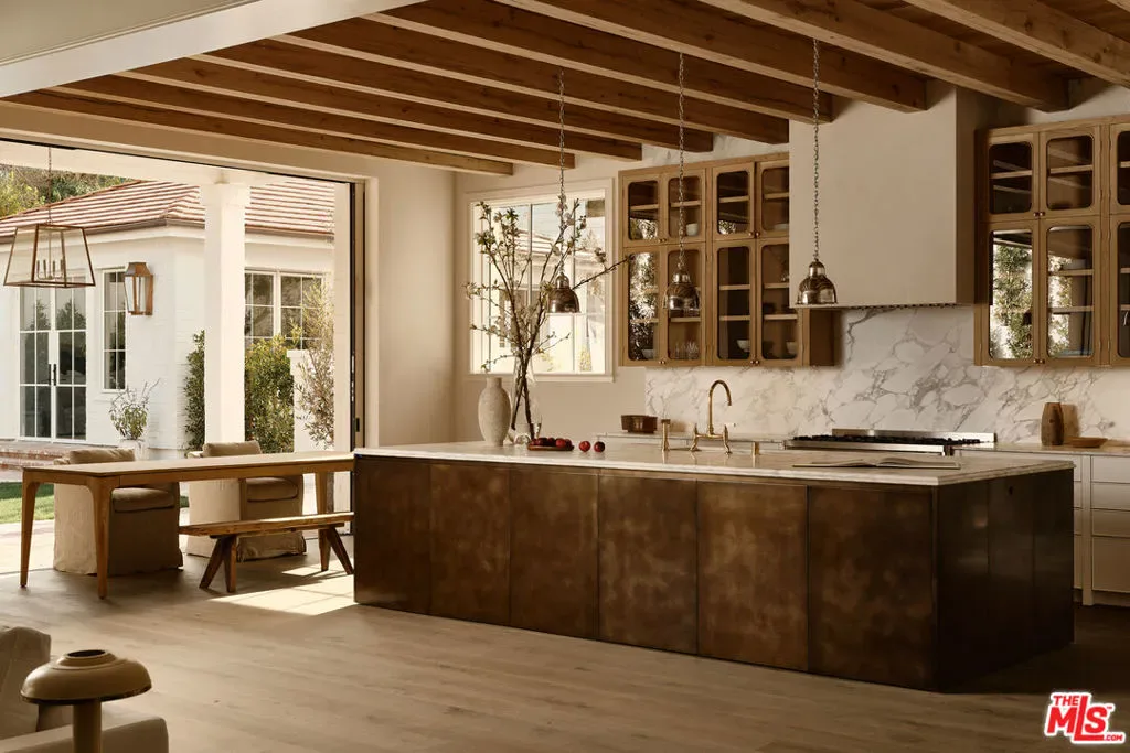Built with meticulous craftsmanship by acclaimed development firm MODE Management, renowned for their attention to the highest quality construction. Visionary design by award-winning Christina Cole Studio, this Contemporary French chateau embodies an elegant and sophisticated lifestyle. You get a prime location on coveted Woodvale Road, perched atop a secure private knoll in Encino’s Royal Oaks. Close to everything and everywhere. The interior spaces feature high ceilings, vintage lighting, and natural materials throughout, carefully designed to create an atmosphere of warmth and sophistication. Every countertop and bathroom throughout the home features unique, exotic stones with remarkable textures, adding to the feeling of opulence. The open-concept layout connects the living, dining, and kitchen areas. In the family room, La Cantina sliding doors open onto outdoor patios, where the fully equipped summer kitchen and lap pool with jacuzzi invite the beauty of the surrounding landscape indoors. The gourmet kitchen, consisting of top-of-the-line appliances and custom cabinetry, inspires culinary creativity. The separate prep kitchen with butcher block countertops offers even more functionality. In the main residence, there are 6 luxurious bedrooms and 8 bathrooms, along with a one-bedroom, full-bathroom ADU guest house with its own kitchen. The primary suite boasts a spa-like ensuite bathroom, complete with a soaking tub, dual bathrooms, and two spacious walk-in showers and closets. The lower level, with amazing natural light and an outdoor patio, is perfect for kids of all ages, as well as great for entertaining. The bar, the movie theater, and the gym with infrared sauna offer every luxury amenity you can imagine. A Control4 smart home system ensures convenient contemporary living.