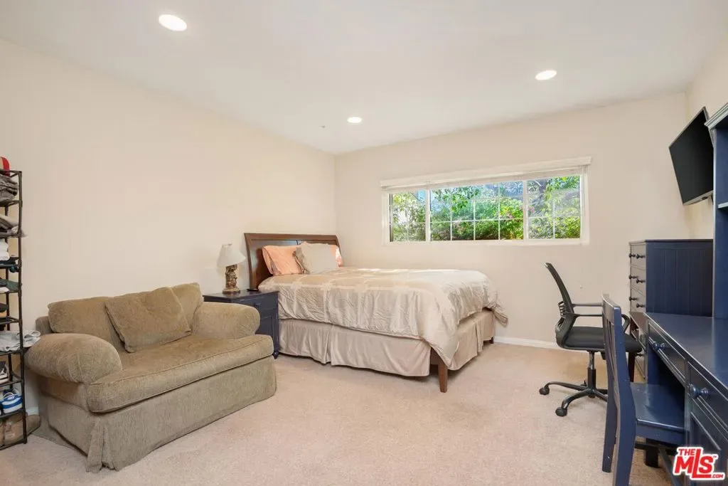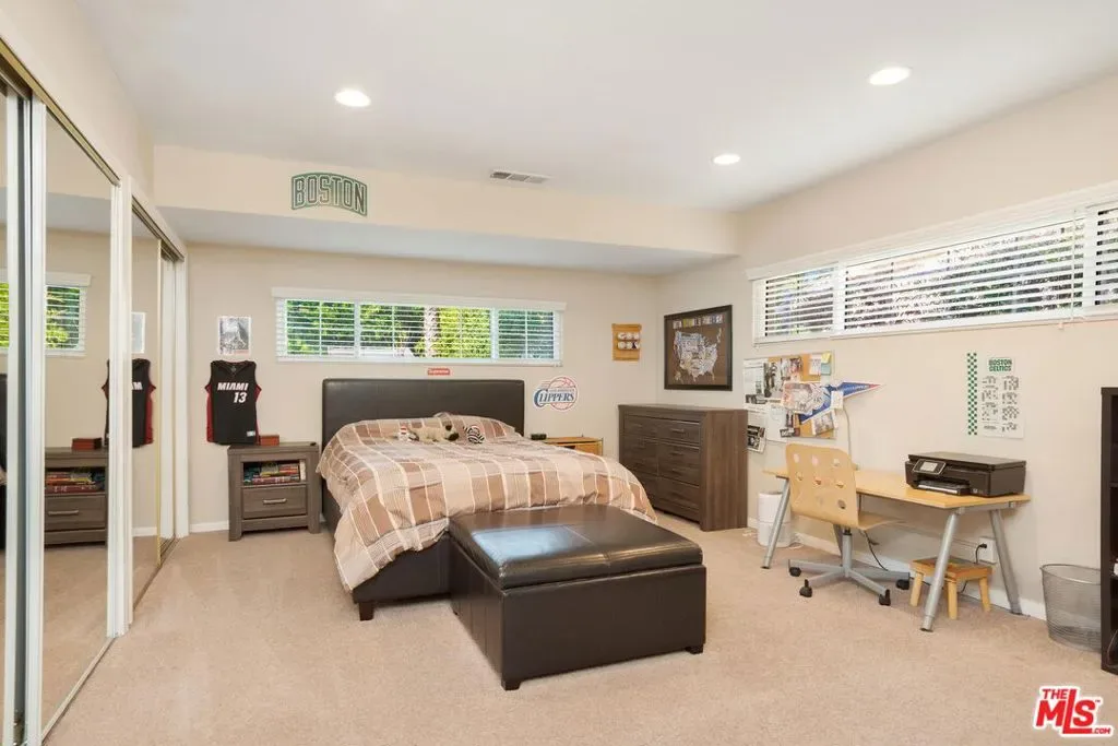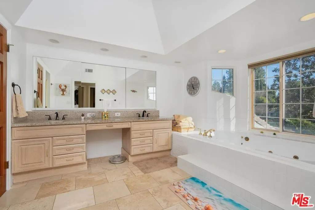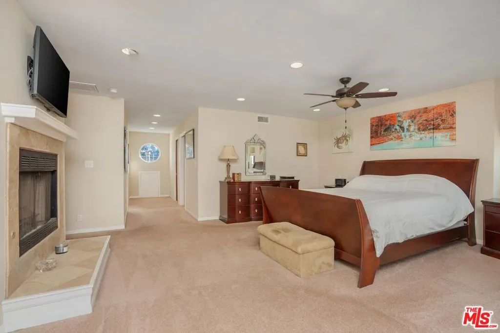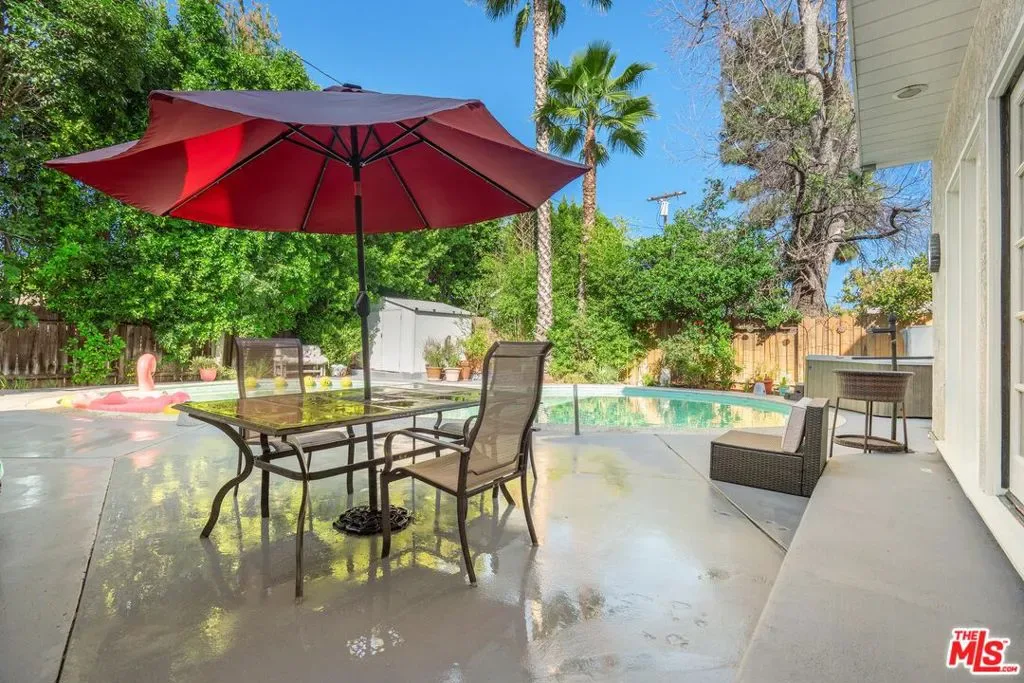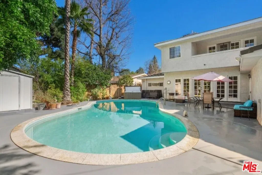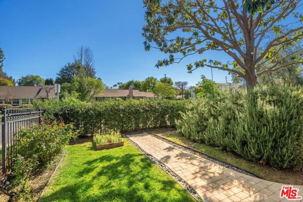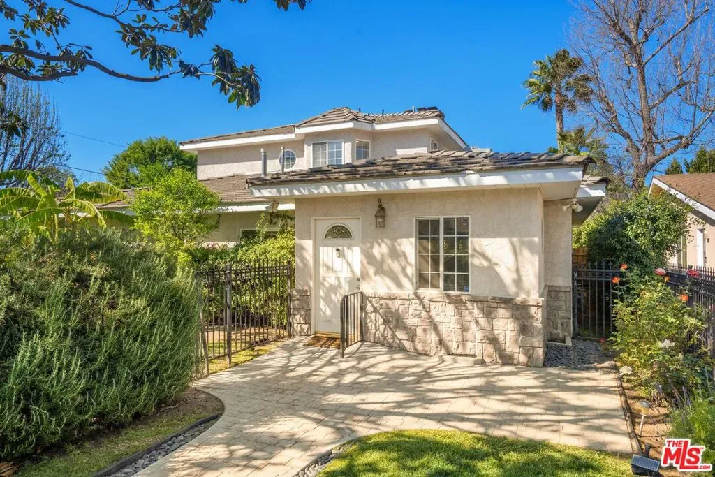 Welcome to this beautifully updated and spacious 5BD/4BA home, ideally located in one of Encino’s most desirable pockets. A gated, lushly landscaped front yard with mature fruit trees including bananas, avocados, peaches, and plums as well as a herb and rose garden, sets the tone as you arrive, leading to a grand double-door entry. Inside, the formal dining room flows seamlessly into the inviting living room, complete with a fireplace and French doors that open to the backyard, creating the perfect indoor-outdoor lifestyle. The eat-in chef’s kitchen is designed for both function and style, featuring a large center island, granite countertops, and abundant cabinetry and prep space. The entire upper level is dedicated to an impressive primary suite, offering exceptional privacy and comfort. This retreat includes a cozy fireplace, private balcony, bonus lounge area with sink and storage, dual closets, and a spa-inspired bathroom with a separate tub and shower. Four additional generously sized bedrooms complete the home, including one with its own private entrance and yard, ideal for guests, extended family, or a home office. The resort-style backyard is perfect for entertaining, showcasing a sparkling pool, above-ground spa, and ample space to relax or host. Additional highlights include a brand new electrical panel and an attached two-car garage. Located within the highly acclaimed Hesby Oaks Charter School district and just moments from the dining and shopping along Ventura Boulevard, this is Encino living at its finest.