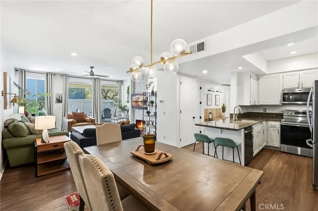 If you are a buyer looking to be close to restaurants and shopping near Ventura Boulevard, and you have been searching for a turnkey lower-level 2-bedroom condo with amazing resort-like grounds, covered side-by-side 2-car parking, and extra storage for your recreational items, then you have just found White Oak Encino Condos. You will be impressed from the moment you enter this gated community, featuring flowering planters and inviting walkways. Enjoy a splash in the resort-inspired pool, relax in the indoor spa, and take in the ambiance of the spectacular clubhouse. Reasonable HOA dues cover fire insurance, earthquake insurance, water, gas, trash, sewer, and landscaping, which is a rare and valuable benefit these days. Almost forgot to mention the 20+ off-street guest parking spaces available for your visitors—they are sure to love that feature. Now let’s step inside the unit. The front door opens to a formal entry hallway leading to a spacious living room with a wall of sliding glass doors that fill the space with natural light. The fireplace is perfectly positioned for cozy Netflix nights while enjoying the warm glow of the fire. Your private enclosed covered patio is the perfect place to enjoy a home-cooked meal al fresco. The galley kitchen offers wood cabinetry, granite countertops, a double sink, and stainless steel appliances, while the adjacent dining area is ready to host your next meal. Down the hallway, you will find the guest bedroom, which can also serve as an office, featuring patio slider access, wall closet storage, and a beautifully designed bathroom that adds charm and character to the space. The washer and dryer are also conveniently located in the hallway. The primary bedroom is sure to impress, offering natural light, abundant closet space, and a spa-like bathroom complete with a soaking tub, walk-in shower with dual shower heads, and a double vanity—so there will be no fighting for space. This Encino condo lifestyle is one you will truly love.