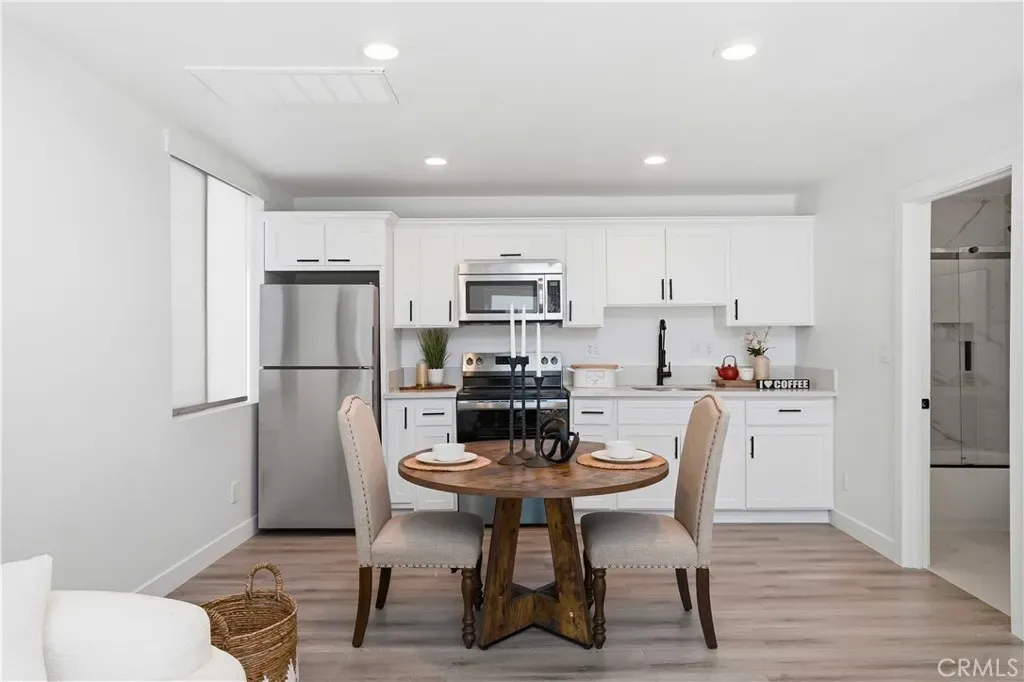 Step outside to fully finished grounds with fresh epoxy in the front yard, backyard, and garage delivering a polished, resort-style feel throughout. A stunning 2-story ADU (approx. 480 sq ft) with soaring ceilings, walls of windows, a beautifully designed kitchen, full bathroom, and a bright loft space, offering the ultimate flexibility for guests, rental income, or a private retreat. Plus, additional potential for a JADU conversion in the garage expands the possibilities even further.