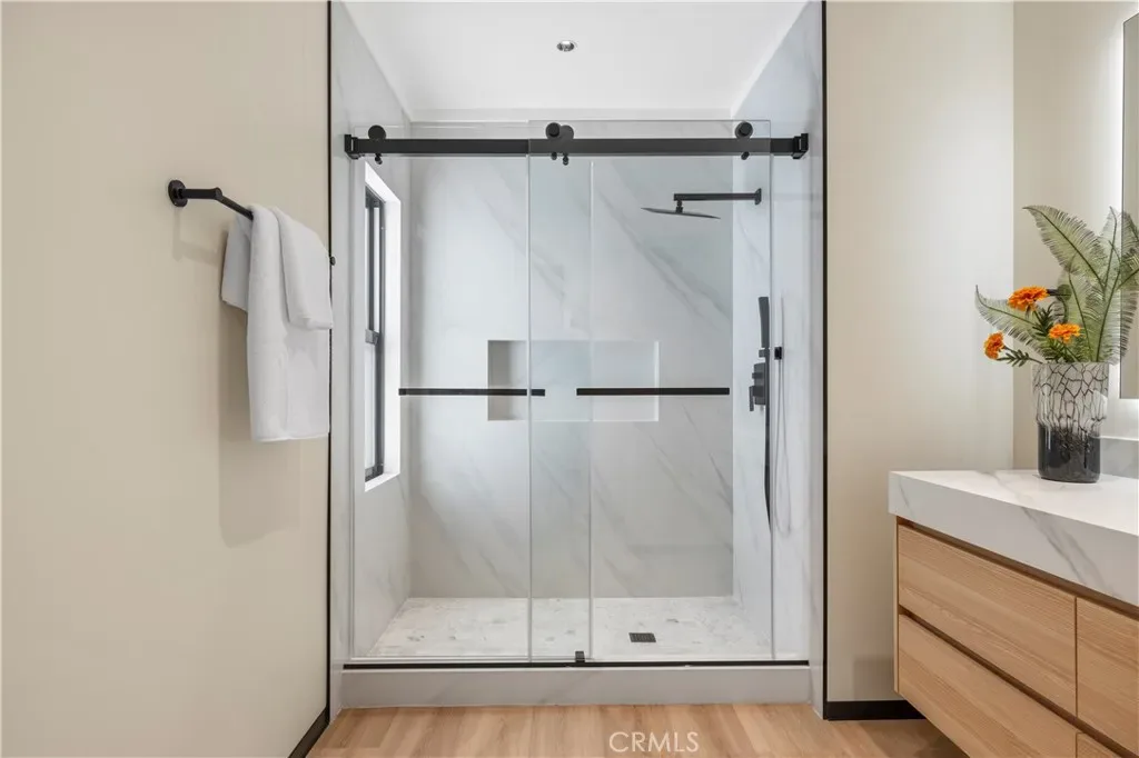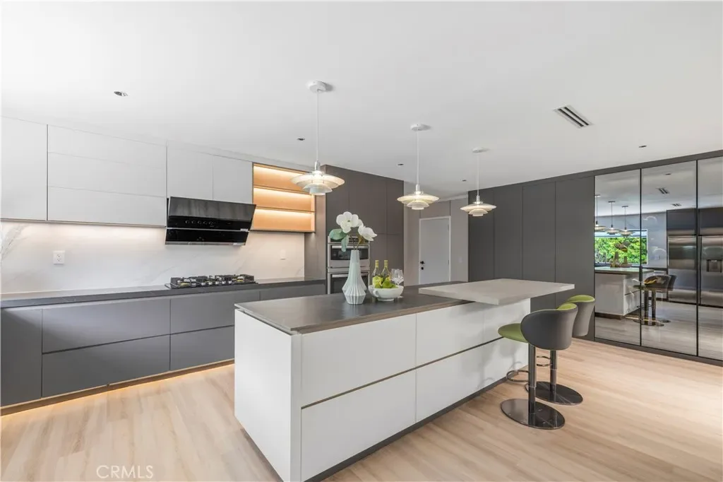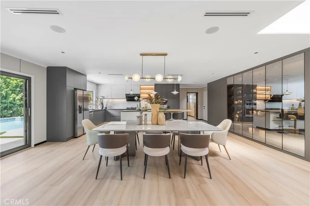 Welcome to Medley, a home that transforms the way you live, unwind, and experience everyday moments. After a long day, this is the kind of home you can’t wait to return to. With the touch of a button, you’re welcomed in—lights gently glow, music begins to play, and the home instantly feels calm, comfortable, and inviting. Whether you’re relaxing by the fireplace or stepping outside to enjoy the pool, every space is designed to help you slow down and feel at ease. South of the Boulevard in the desirable hills of Encino, this private corner lot single-story home offers 5 bedrooms and 6 bathrooms with an open floor plan designed for both everyday living and effortless entertaining. This one-of-a-kind residence blends thoughtful design, quality construction, and modern functionality—truly a home that must be seen to be fully appreciated. Inside, clean lines and well-organized spaces create a natural flow between the living, dining, and kitchen. The kitchen features a spacious island, automated spice rack, multi function sink, and counter that extends seamlessly outside creating an ideal indoor-outdoor lifestyle. The backyard is designed for gathering and relaxing, complete with a pool and multiple areas to enjoy the setting. Each bedroom offers its own private bath, creating comfort and privacy throughout, along with spacious closets and smart switches ready for the installation of electric shades. The primary suite overlooks the sparkling pool and serves as a true retreat, featuring a custom walk-in closet with built-in cabinetry and glass doors, a dual vanity, soaking tub, and shower. Thoughtful details throughout include built-in entry storage, dedicated laundry cabinetry, and dining storage with a glass wine display—each element designed to make everyday living feel simple and organized. Every inch of this home has been thoughtfully designed. Reimagined with upgraded materials and systems designed for durability and long-term performance, the home incorporates moisture-resistant, low-emission, and fire-resistant elements, along with reinforced structural components for added stability. Smart home technology is fully integrated, featuring a centralized control system, bedside touch panels, dual-control switches, video doorbell, & a full interior and exterior security camera system with remote access and real-time monitoring. A rare offering in a prime Encino location—where design, comfort, & technology come together to create a home that truly stands apart.
