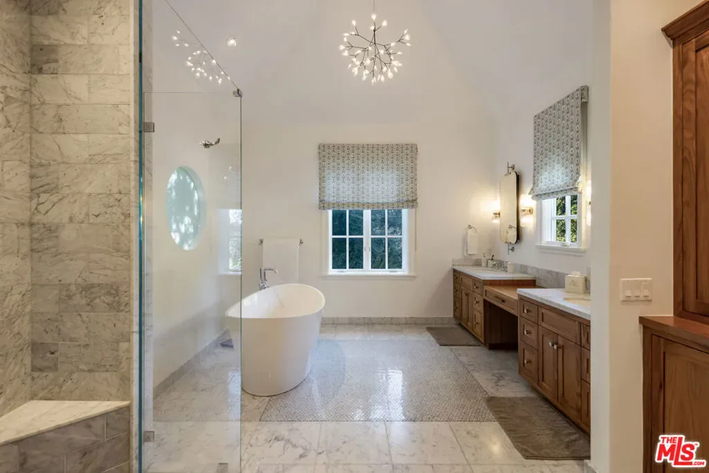 Situated on a quiet cul-de-sac in prestigious Lake Encino, this gated French-inspired estate blends timeless elegance with modern luxury, complete with access to private tennis courts just moments away. A grand two-story foyer opens to expansive living and dining spaces with soaring ceilings, fireplaces, and French doors that seamlessly connect to the outdoors. The chef’s kitchen is outfitted with top-tier appliances and custom cabinetry, flowing into a bright breakfast area and adjacent family spaces including a media room and gym. The oversized primary suite offers a private retreat with multiple balconies, a fireplace, spa-like bath, and custom walk-in closet. Additional guest suites and a flexible office/5th bedroom provide ample accommodations. Resort-style grounds feature a pool and spa, covered patio, lush landscaping, and multiple entertaining areas, completing this exceptional Lake Encino offering.