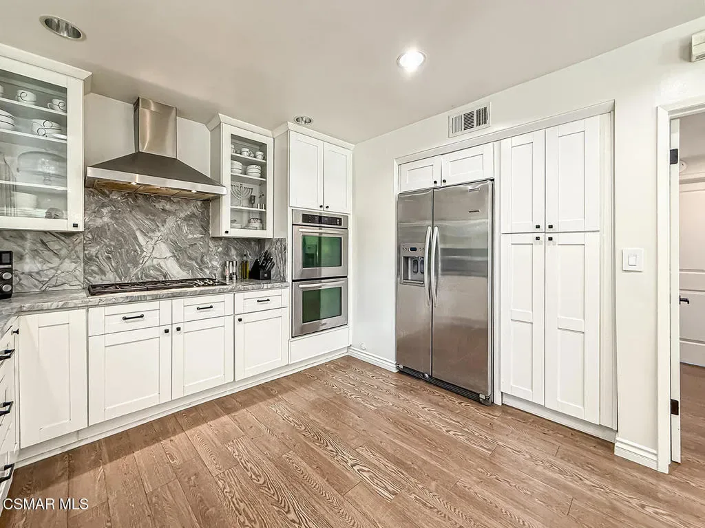 Across from award-winning Lanai Road Elementary, this charming 5-bedroom, 3-bath two-story pool home, is ideally located south of the Boulevard in one of Encino’s most coveted neighborhoods. Perched on a private knoll and set back from the street, this home offers a rare combination of privacy, space, and functionality. The expansive, wraparound yard is a true standout–featuring a sparkling pool and spa, sport court, grassy play area, and plenty of room to entertain or unwind.Inside, the light-filled open floor plan creates an easy flow between the kitchen, dining, and living areas-perfect for both everyday living and hosting. The updated kitchen is equipped with quartz countertops, double ovens, and a Wolf cooktop, blending style and performance. Shutters throughout the home add a timeless touch while enhancing both style and privacy, and remodeled bathrooms offer a fresh, modern feel. All bedrooms are generously sized, including oversized secondary bedrooms that provide plenty of space for family, guests, or flexible use. A downstairs bedroom and full bath add convenience for guests, extended family, or a home office. Additional highlights include an attached two-car garage and ample driveway parking. Located in the highly sought-after Lanai School District and just moments from the Westside, shopping, dining, and everything Encino has to offer, this home delivers the perfect blend of comfort, convenience, and California lifestyle. Welcome to your own private oasis.