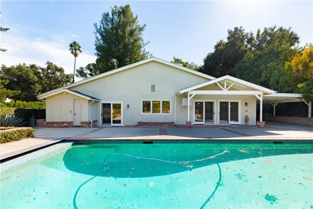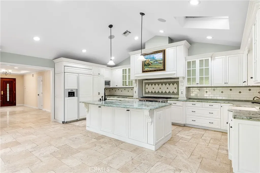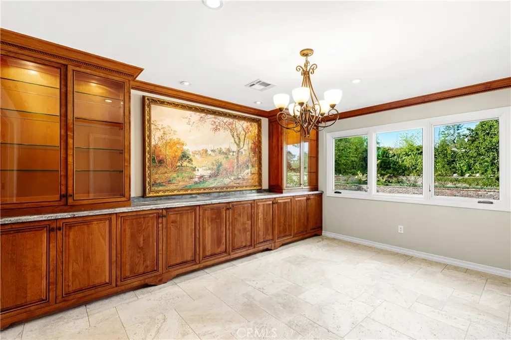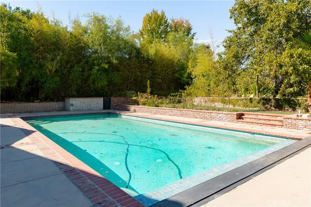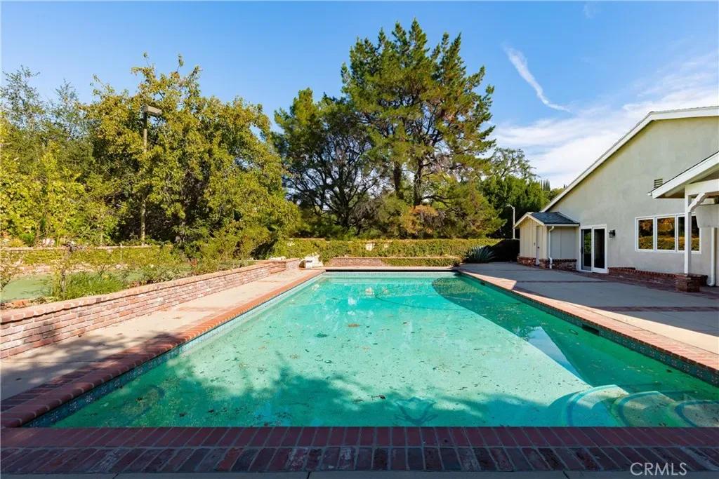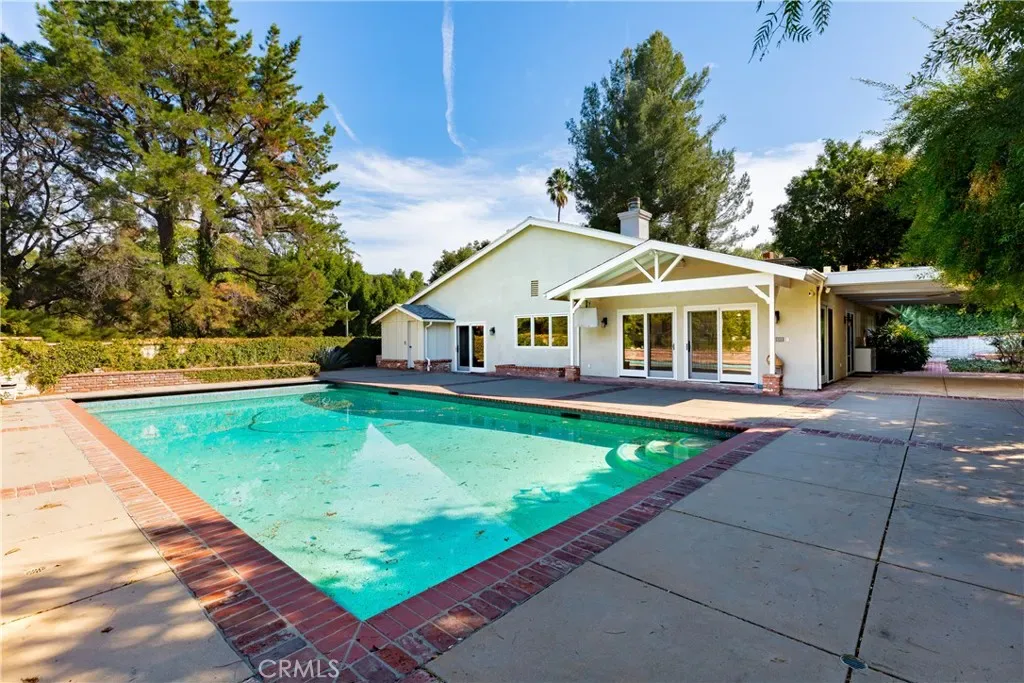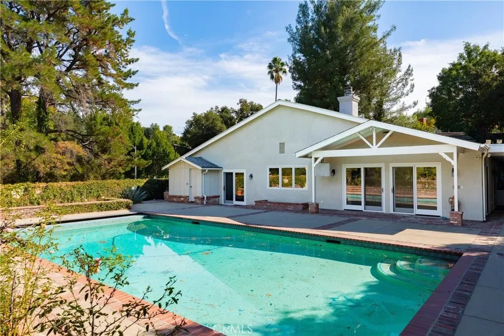 Set above the street on an exclusive cul-de-sac in Encino south, is this remodeled 4BR Traditional gem. Spanning a lot incorporating over 17,000 sq ft per assessor, this amazing property is tailor made for entertaining. A large and bright foyer/gallery, ideal for art, greets you as you enter, and leads to a spacious step-down living room/media room, including wood floors, a built-in entertainment unit, and a picturesque French window. The oversized formal dining room features custom wood crown moldings and a built-in china cabinet with elegant wood and beveled-glass accents. The focal point of the home is the dramatic state-of-the-art skylit kitchen/family room, highlighted by a striking granite center island, an Italian tile backsplash, hand-done cabinetry, 2 sinks, and a Dacor commercial 6-burner range. The family room, overlooking the pool, has a vaulted ceiling, travertine floors, a marble fireplace, and maple wood-built ins. The luxurious primary suite provides dual vanities, a granite and mosaic shower, a spa tub and walk-in closet. All the secondary bedrooms are abundant in size and have mirrored wardrobes. The private and expansive back yard is comprised of a sparkling brick-laced Pebble Tec pool, green, multiple patios, and hill views. An added bonus is the 3-car garage with an array of built-ins. Minutes to Ventura Blvd and its many vibrant dining and shopping options.