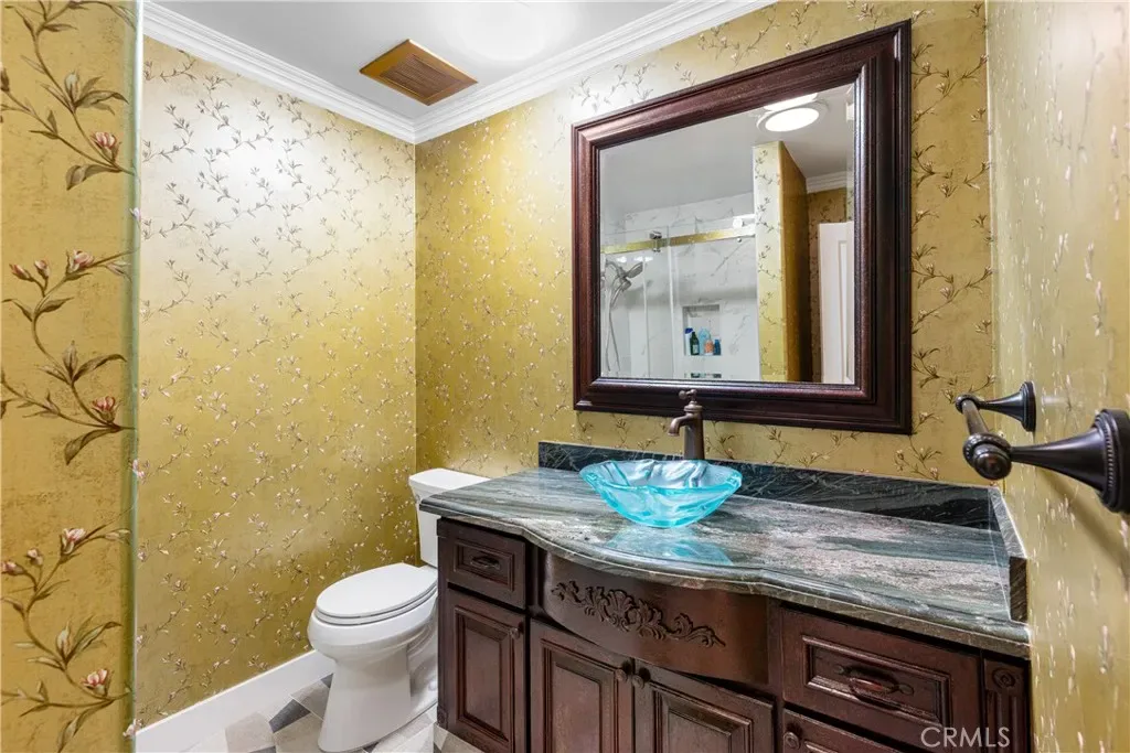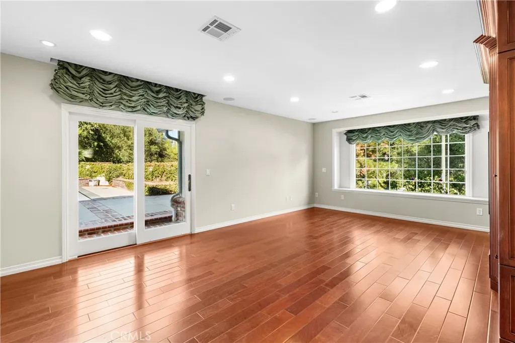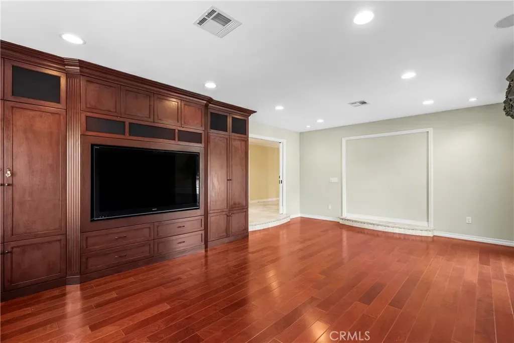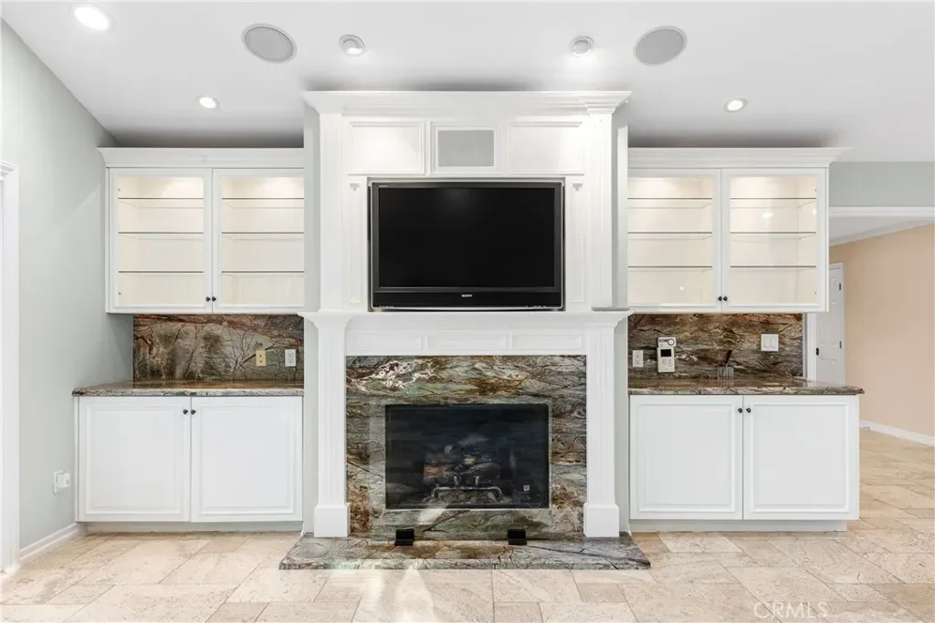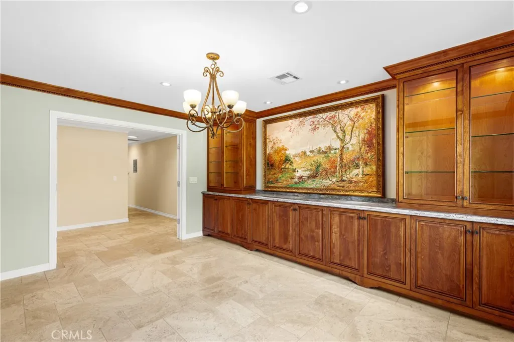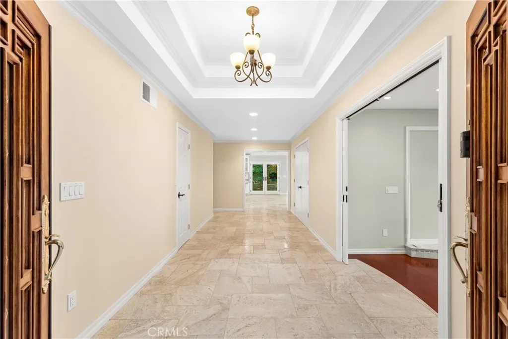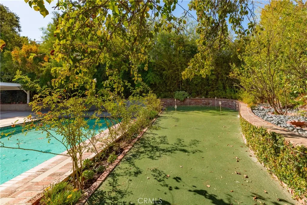 Set above the street on an exclusive cul-de-sac in Encino south, is this remodeled 4BR Traditional gem. Spanning a lot incorporating over 17,000 sq ft per assessor, this amazing property is tailor made for entertaining. A large and bright foyer/gallery, ideal for art, greets you as you enter, and leads to a spacious step-down living room/media room, including wood floors, a built-in entertainment unit, and a picturesque French window. The oversized formal dining room features custom wood crown moldings and a built-in china cabinet with elegant wood and beveled-glass accents. The focal point of the home is the dramatic state-of-the-art skylit kitchen/family room, highlighted by a striking granite center island, an Italian tile backsplash, hand-done cabinetry, 2 sinks, and a Dacor commercial 6-burner range. The family room, overlooking the pool, has a vaulted ceiling, travertine floors, a marble fireplace, and maple wood-built ins. The luxurious primary suite provides dual vanities, a granite and mosaic shower, a spa tub and walk-in closet. All the secondary bedrooms are abundant in size and have mirrored wardrobes. The private and expansive back yard is comprised of a sparkling brick-laced Pebble Tec pool, green, multiple patios, and hill views. An added bonus is the 3-car garage with an array of built-ins. Minutes to Ventura Blvd and its many vibrant dining and shopping options.