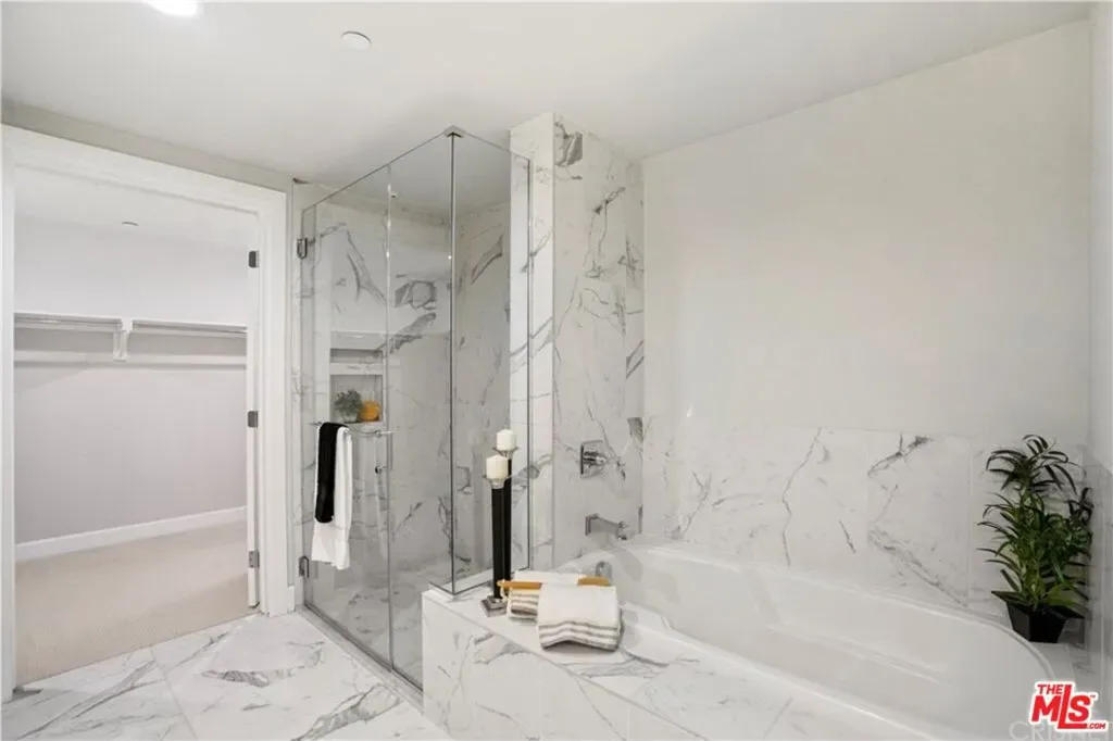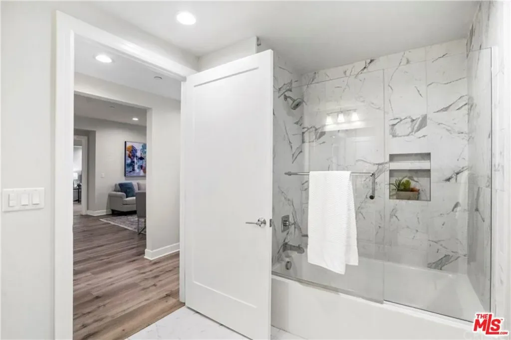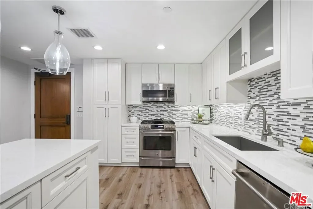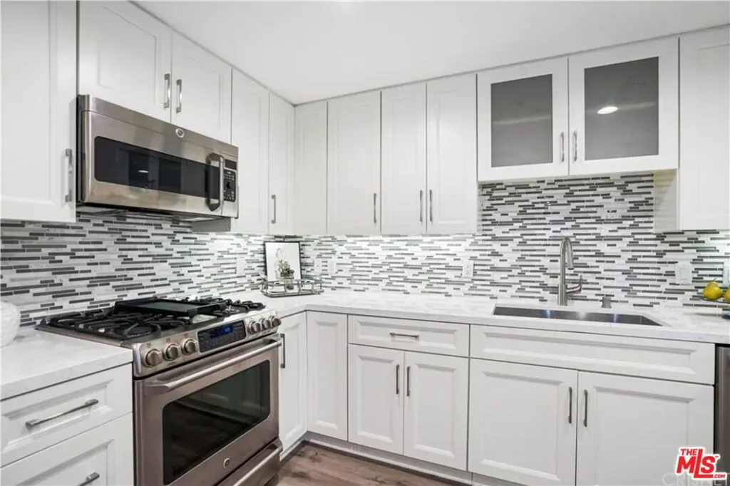 Amazing opportunity to own in The Balboa Villas, a beautifully designed community built in 2016. This immaculate, newer home offers approximately 1,350 square feet of thoughtfully designed living space. The spacious living room features plantation shutters and large sliding glass doors that open to a wonderful private patio, creating the perfect indoor-outdoor flow. The gourmet kitchen is a standout with quartz countertops, mosaic glass backsplash, deep farmhouse sink, abundant self-closing cabinetry, expansive counter space, a center island, and GE stainless steel appliances. The home offers 2 bedrooms, 2 full bathrooms, plus a versatile bonus space that can be used as a dining area, office, or guest room. The primary suite includes a spacious walk-in closet and a luxurious en-suite bathroom featuring dual sinks, quartz countertops, a frameless glass shower, and a separate soaking tub. The second bedroom is generously sized and adjacent to a full bathroom with a tub/shower and elegant tile surround. Additional features include plantation shutters throughout, an in-unit stackable washer and dryer closet, and two tandem parking spaces. Each unit has its own individual water meter, and gas is included in the monthly HOA dues. Community amenities include concierge service, earthquake insurance, a fitness center, library, community room, outdoor seating areas with barbecues and fireplace, and ample guest parking. Electric vehicle charging and storage cages are available for an additional fee. Conveniently located near restaurants, shopping centers, parks, and easy freeway access, this home offers both comfort and convenience in a highly desirable community.